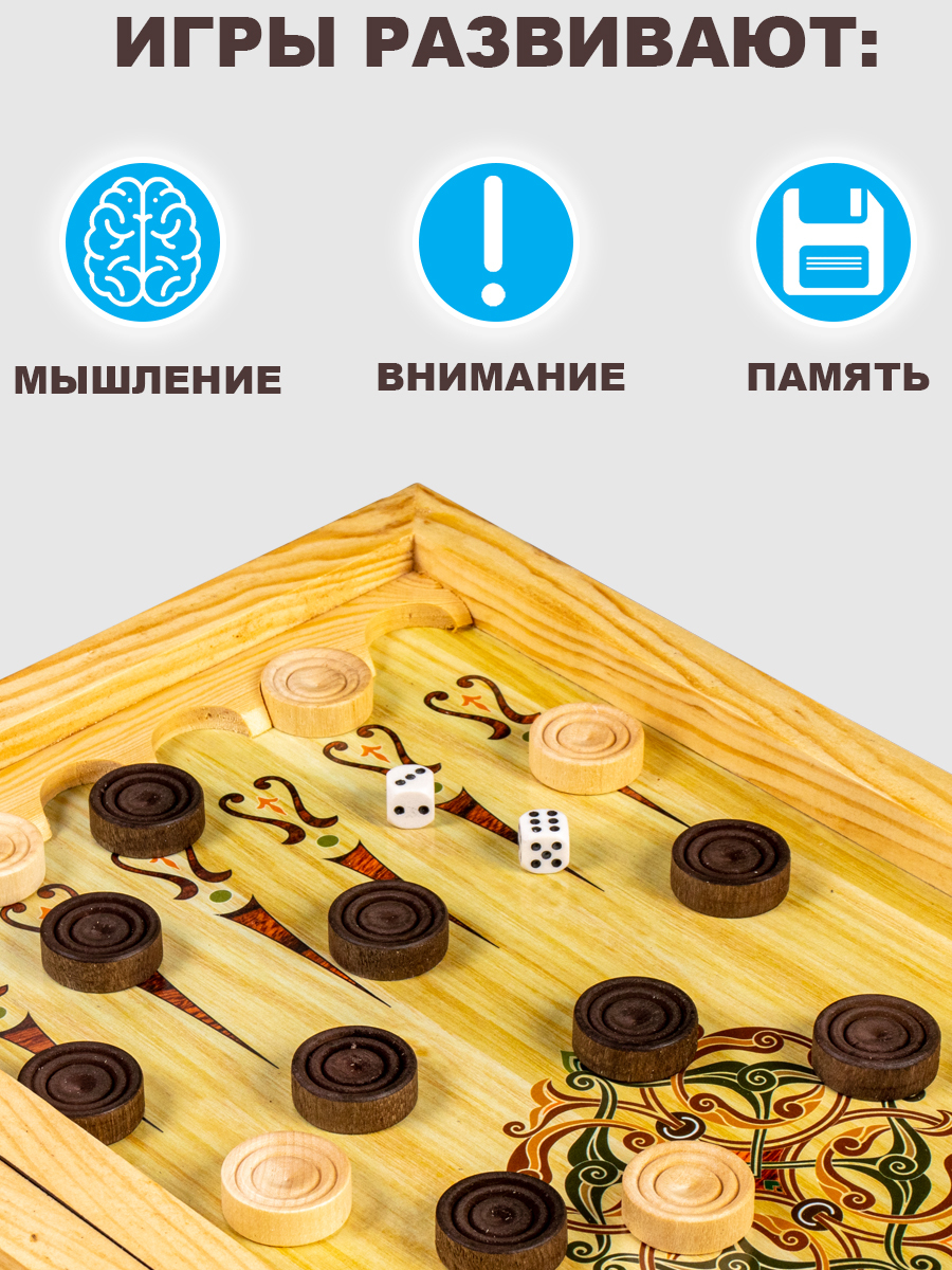 Набор шашки + нарды – это компактная игра 2 в 1, которая позволит Вам провести время с пользой для ума и потренирует аналитические способности.✔ Набор игр изготовлен из дерева (береза);✔ На обратной стороне доски имеется поле для игры в шашки или шахматы