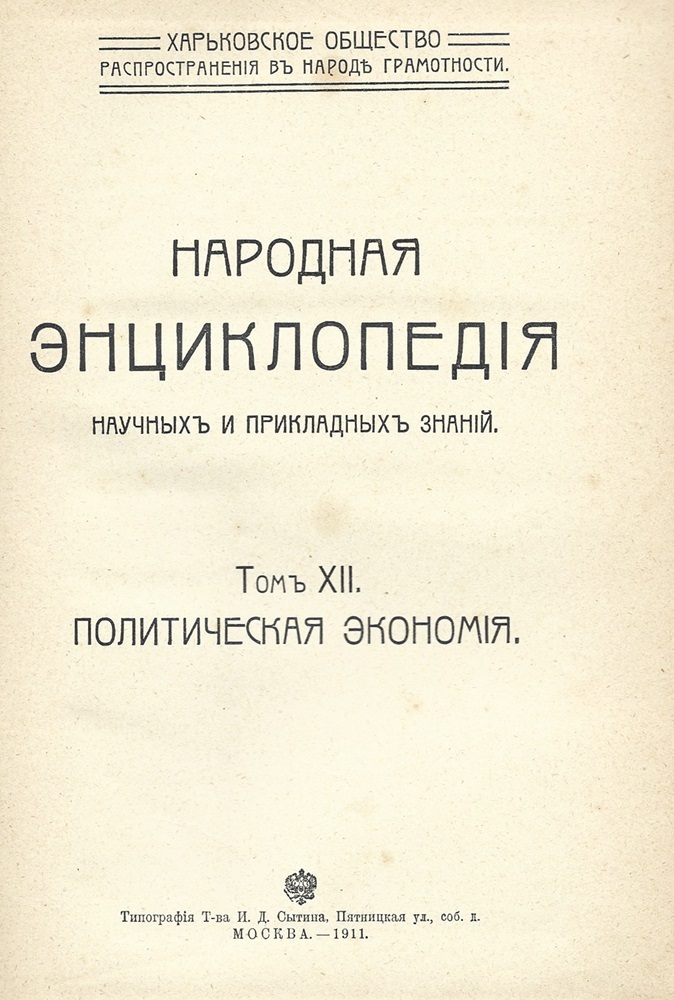 Народная энциклопедия научных и прикладных знаний. Том 12. Политическая экономия. Издание не подлежит вывозу за пределы Российской Федерации.