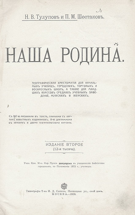 Комментарий:Издание второе.Описание:Москва, 1910 год. Издание Товарищества И. Д. Сытина, Типография И. Д. Сытина. с 387 рисунками в тексте, снимками с картин известных художников, 8-ю диаграммами в карсках и 2-мя географическими картами. Владельческий п