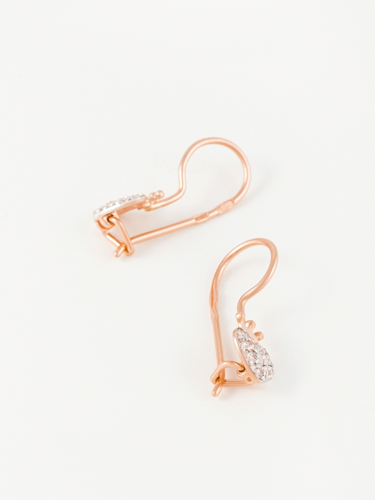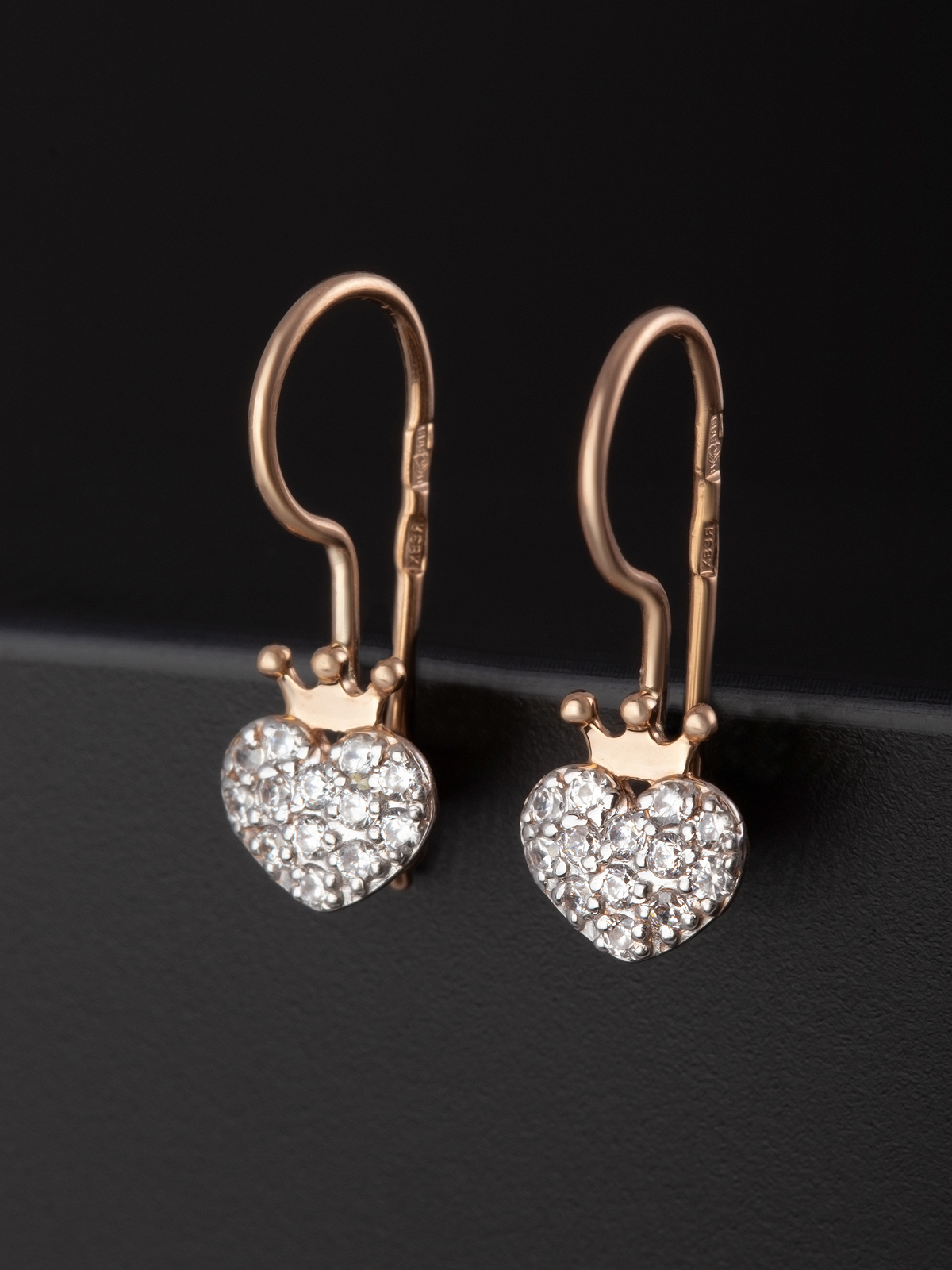 Серьги детские из красного золота 585 пробы. ФианитыО главном камне украшения:Фианит - искусственный аналог бриллианта. Изначально камень создавался как материал с определенными оптическими свойствами для лазерного оборудования и получил свое название по