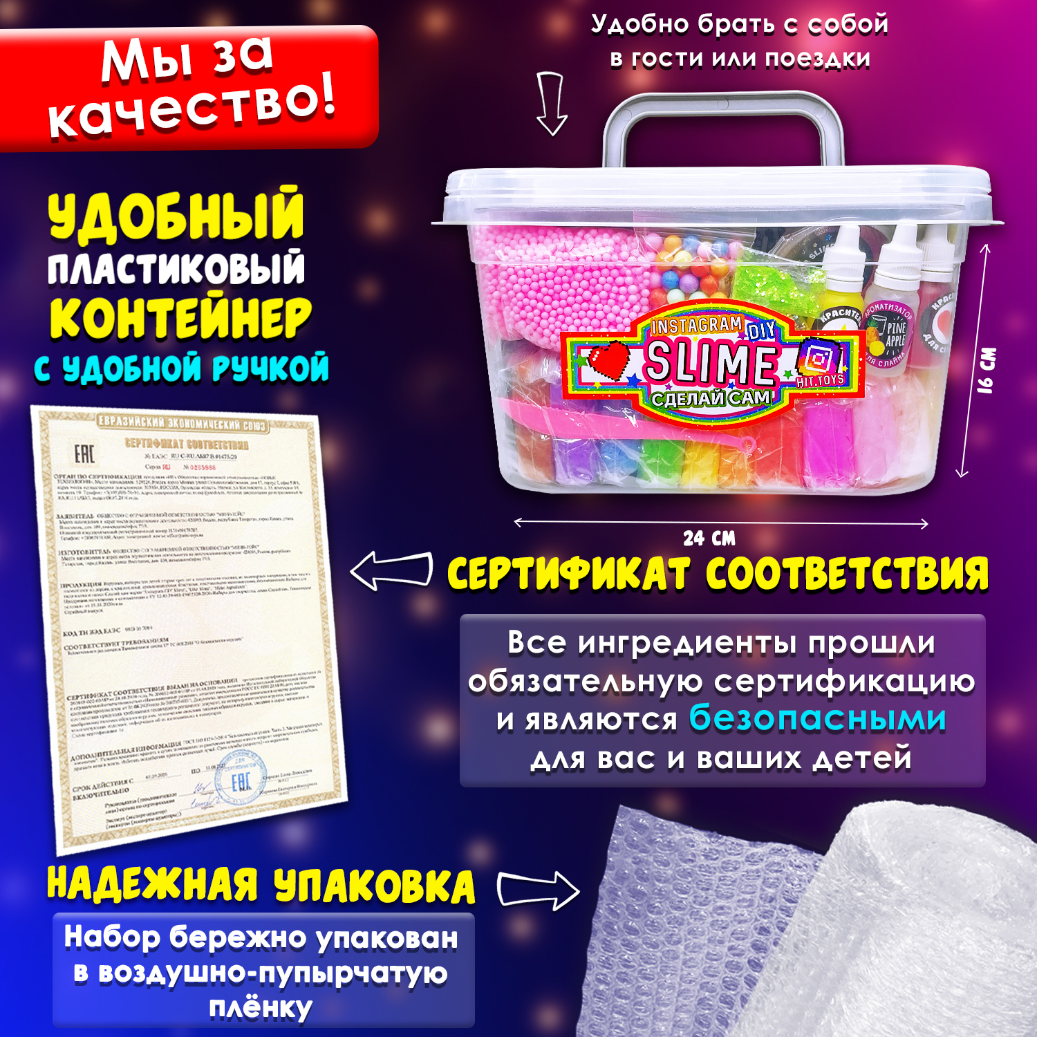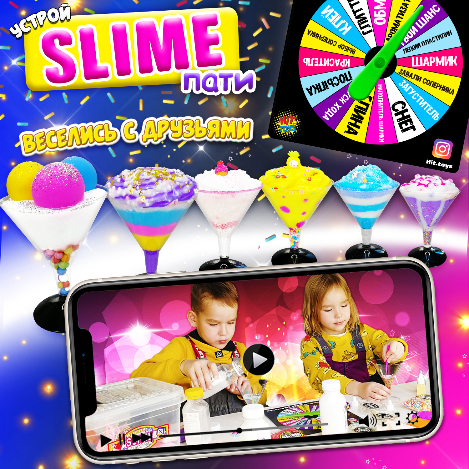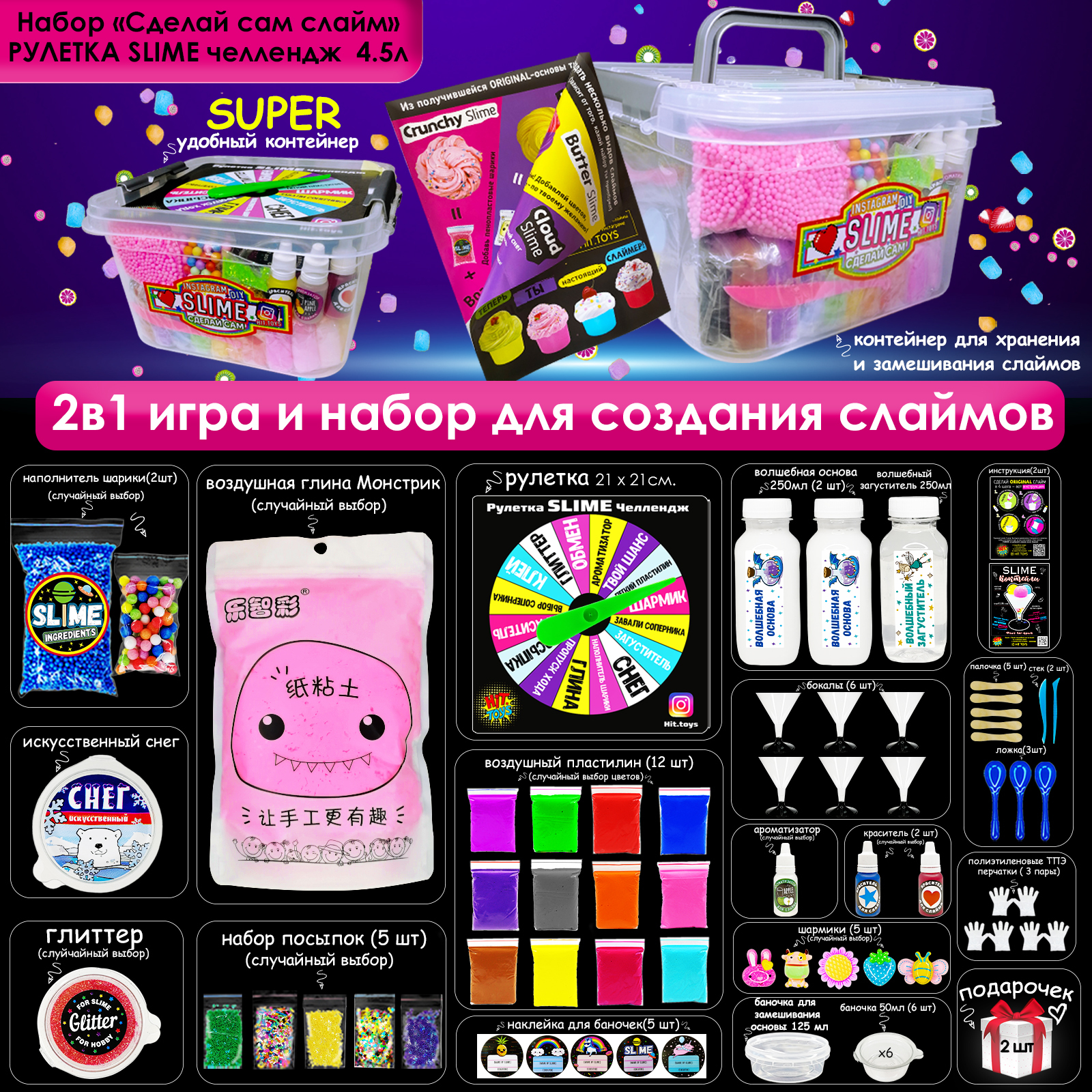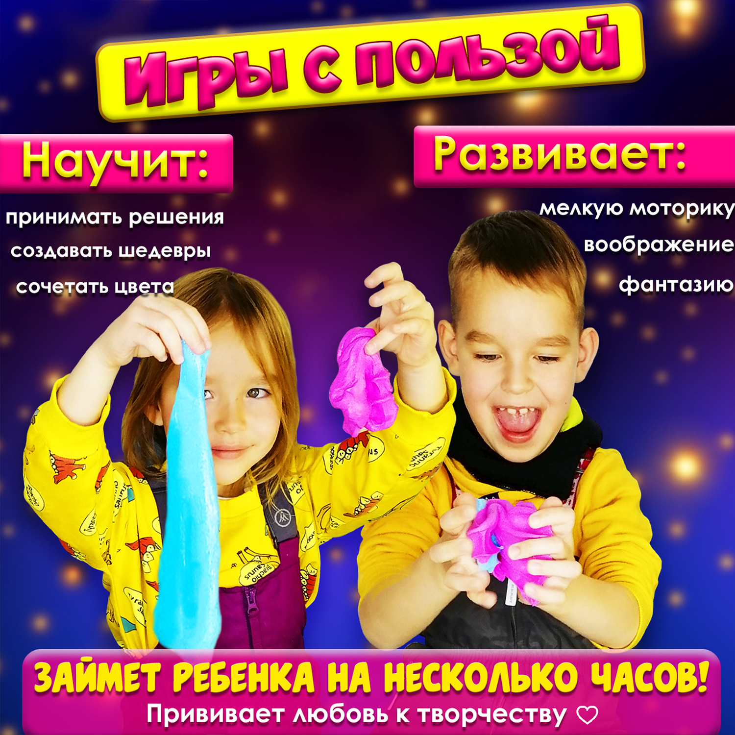 Всё, что нужно для создания удивительных слаймов, уже есть в этом наборе. У вас получится много готового слайма и много наполнителей и посыпок. Ингредиенты входящие в набор, не дадут скучать детям в течение нескольких часов: 12 цветов воздушного пластилин