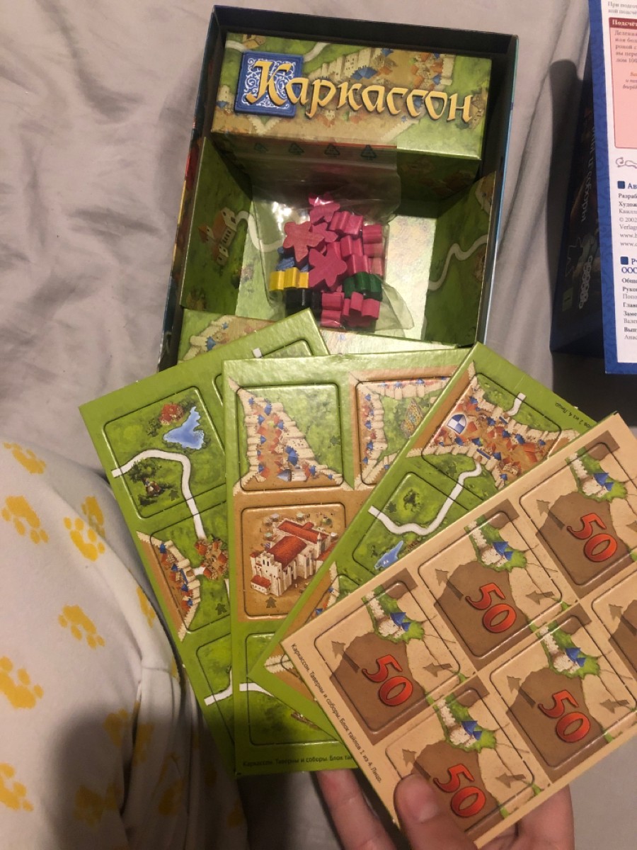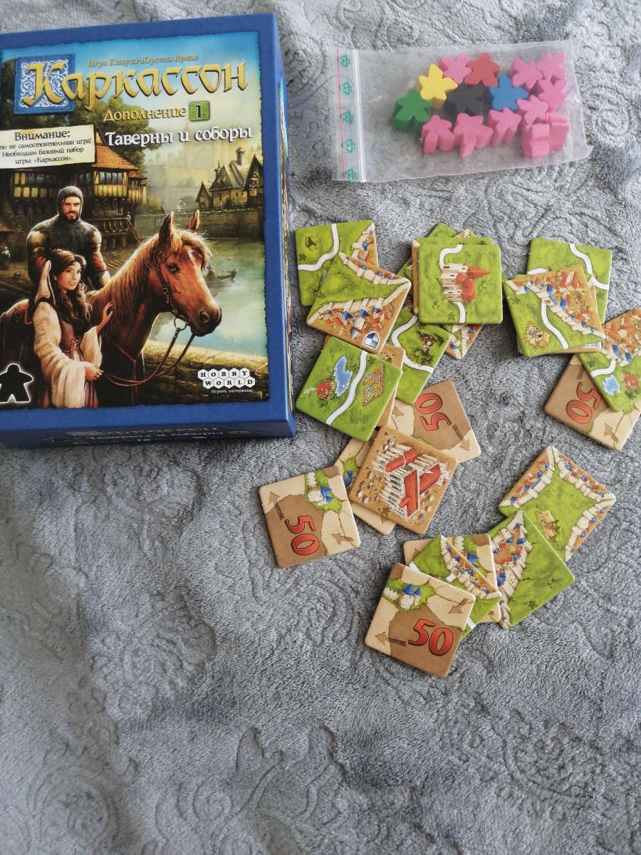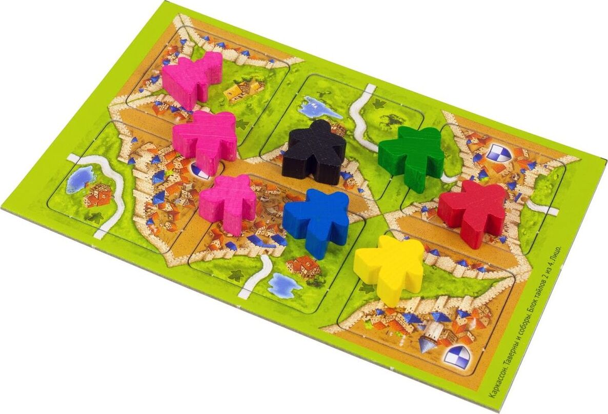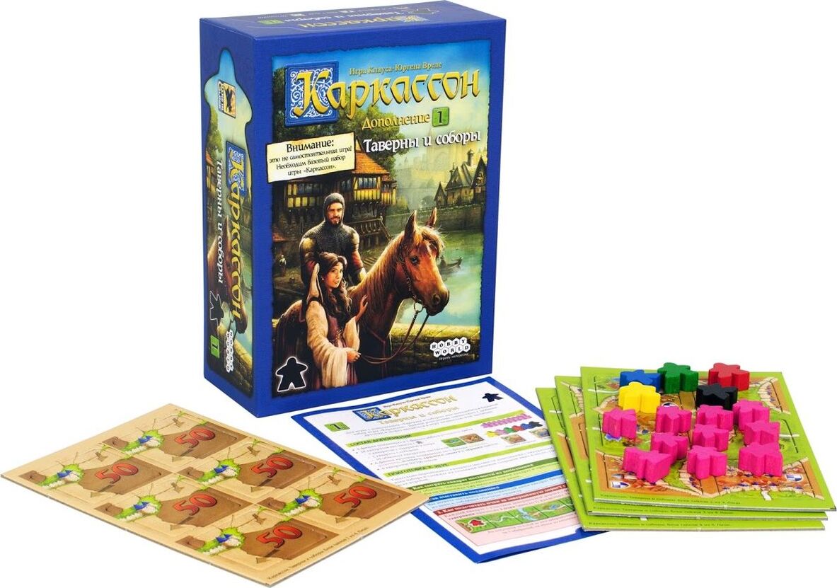 Состав дополнения:18 новых квадратов местностиВеличественные соборы и живописные таверны у озер помогут заработать дополнительные очки за города и дороги. Но будьте осторожны: они могут стоить вам очень дорого…8 фишек подданных и 1 аббат для шестого игрок