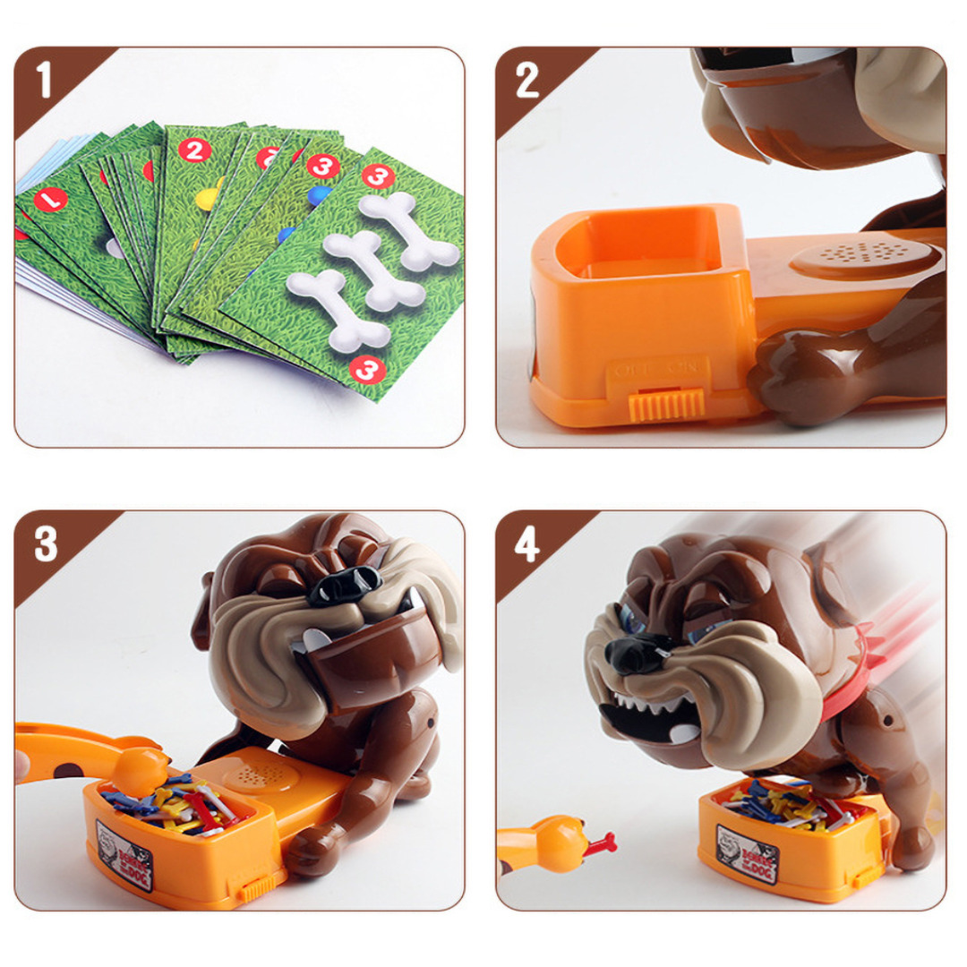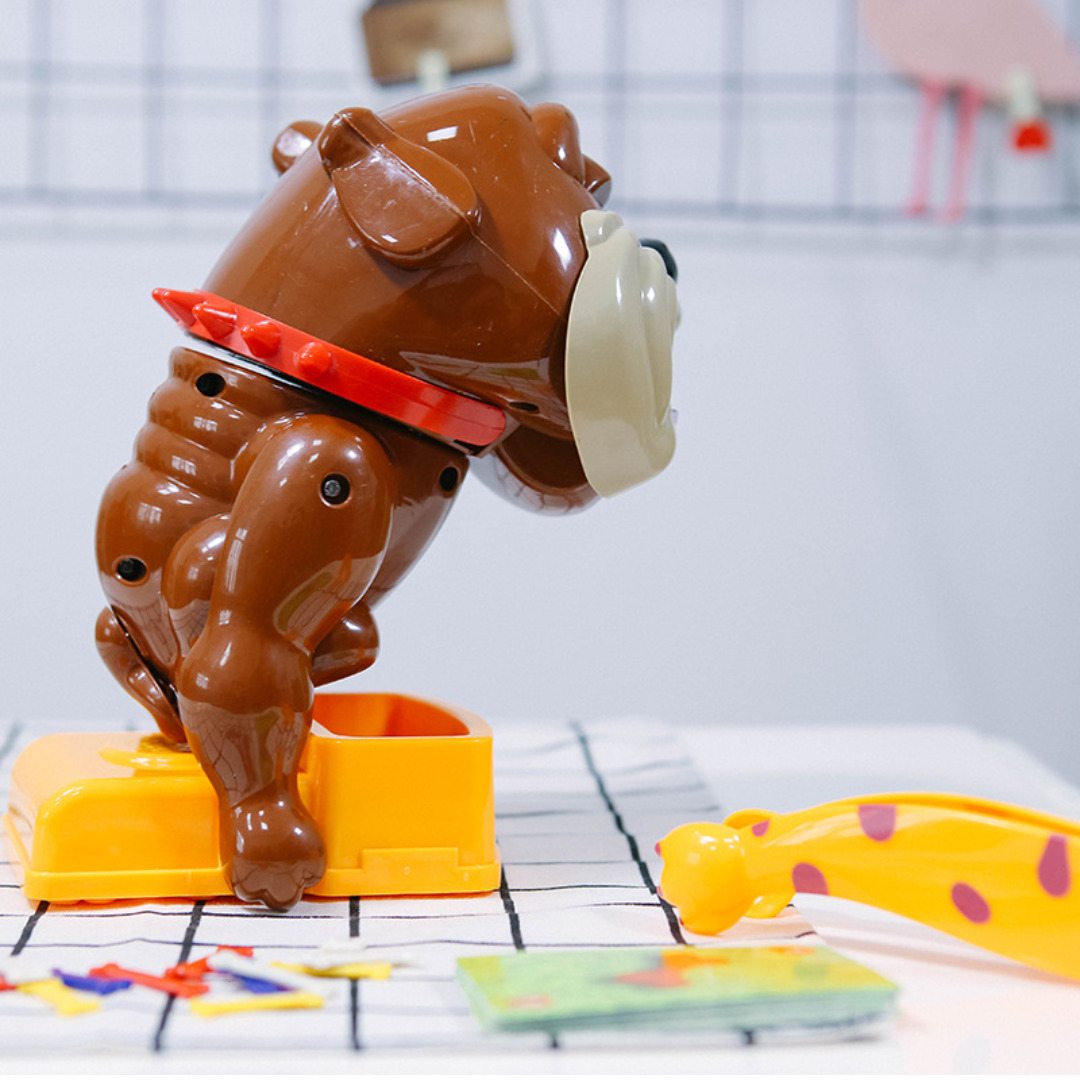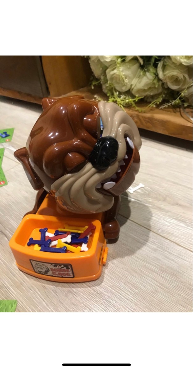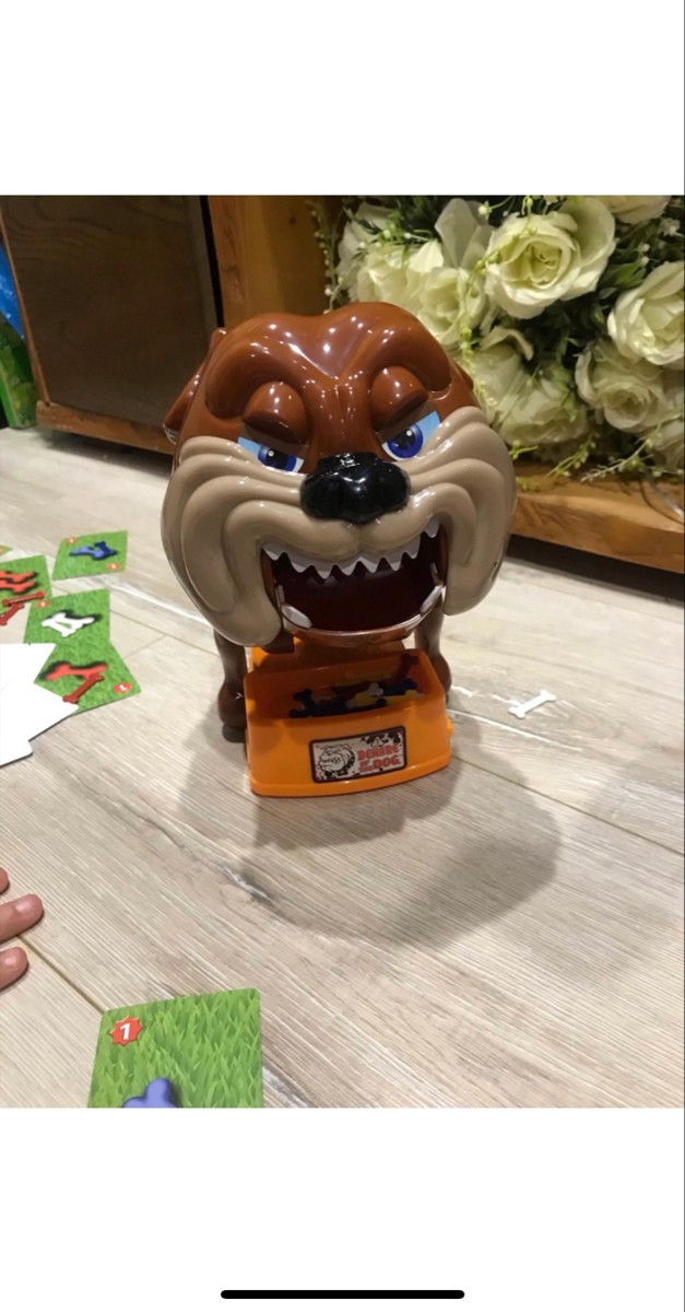 Настольная игра "Осторожно злая собака!Захватывающая игрушка для большой и маленькой компании. Минимальное количество участников 2 человека. Каждый участник по очереди тянет карточку с изображением косточек того цвета, которые ему нужно вытащить из миски