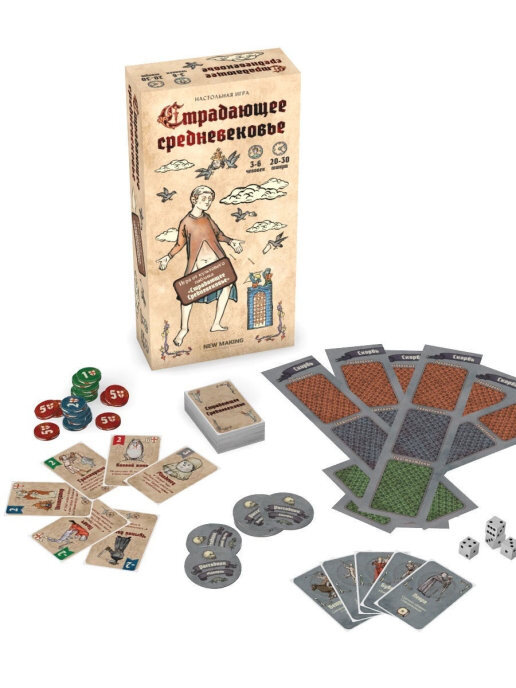 Страдающее Средневековье — это безумный и веселый карточный филлер, который научит вас, как правильно страдать от чумы, крестовых походов и инквизиции.От 3 до 6 игроков.30-40 минут на партию.Костры инквизиции все ещё горят, крысы разносят болезни, палачи
