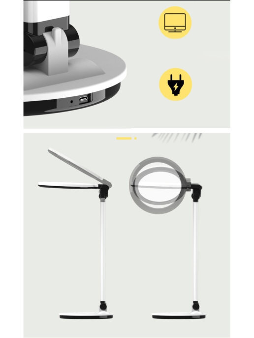Комплектация: Настольная лампа; светодиодная лампа;LED лампа;светильник-лампа;От порта USB и аккумулятора.Описание:Работа показала, что холодный дневной свет с цветовой температурой в 6000 K способствует повышению внимания, так как в таком случае освещен