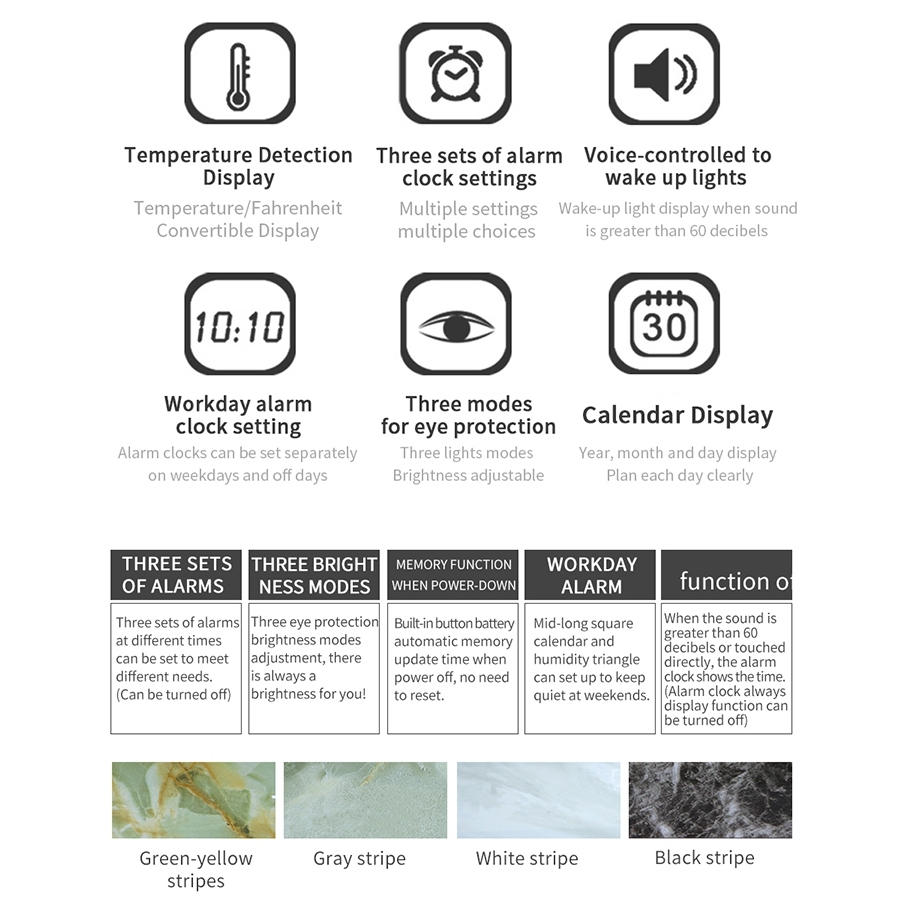 Настольные настольные дорожные часы с функцией повтора сигнала температуры и влажности, черный