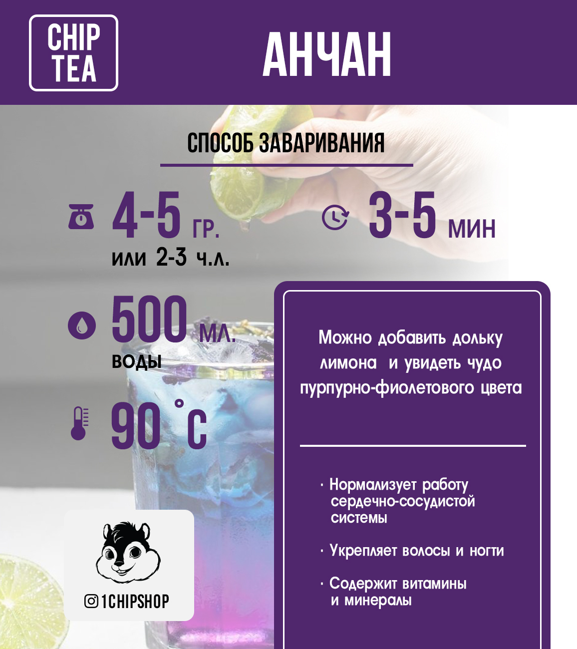 Условия хранения:Голубой Чай Анчан(Чанг Шу из цветов клитории тройчатой) Хранить при температуре не более 25градусов С и относительной влажности не более 70%.Состав:Настоящий Тайский Синий Чай, Цветки Клитории Тройчатой, ЧангШу, Фиолетовый Чай Для Здоровь