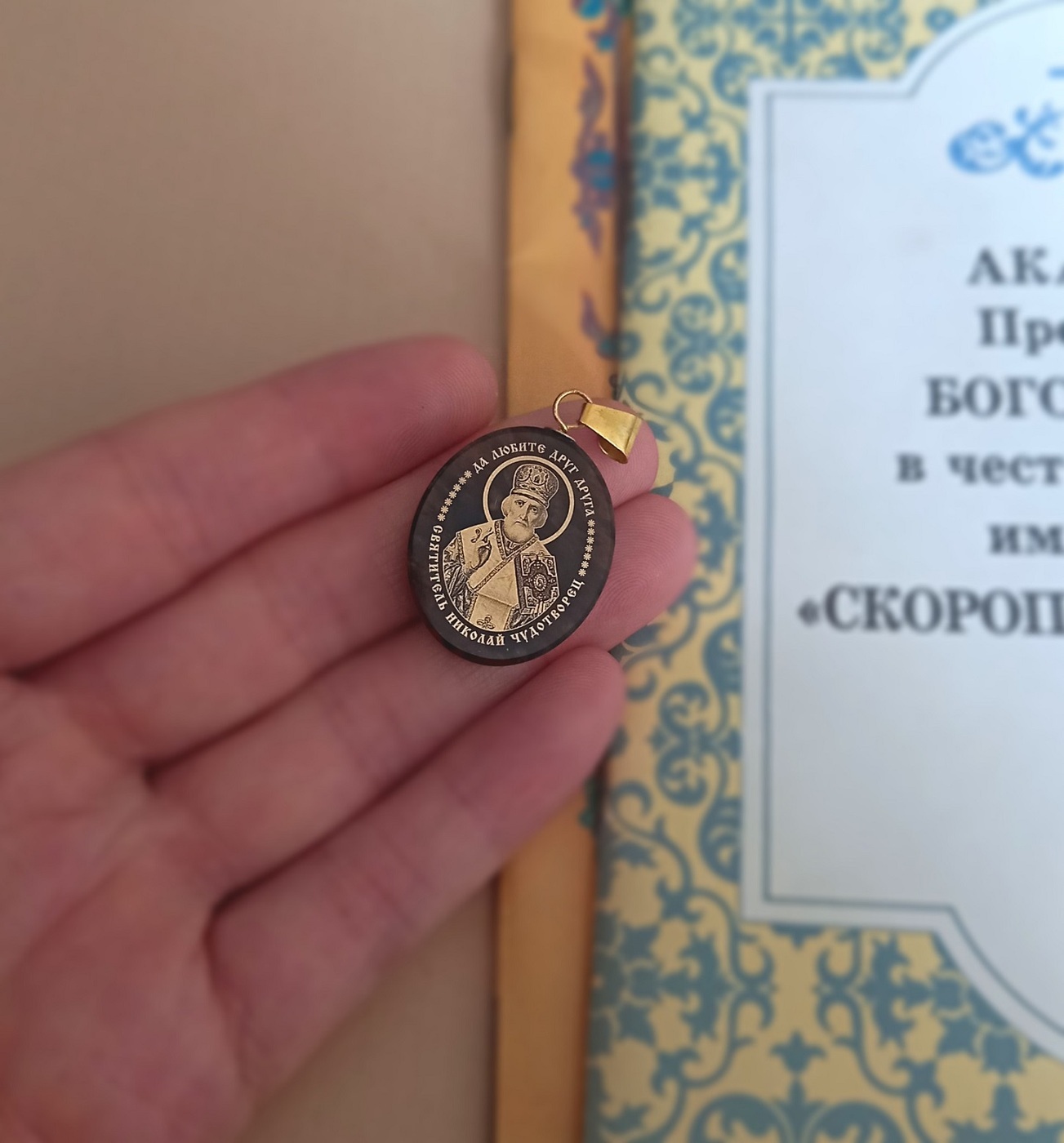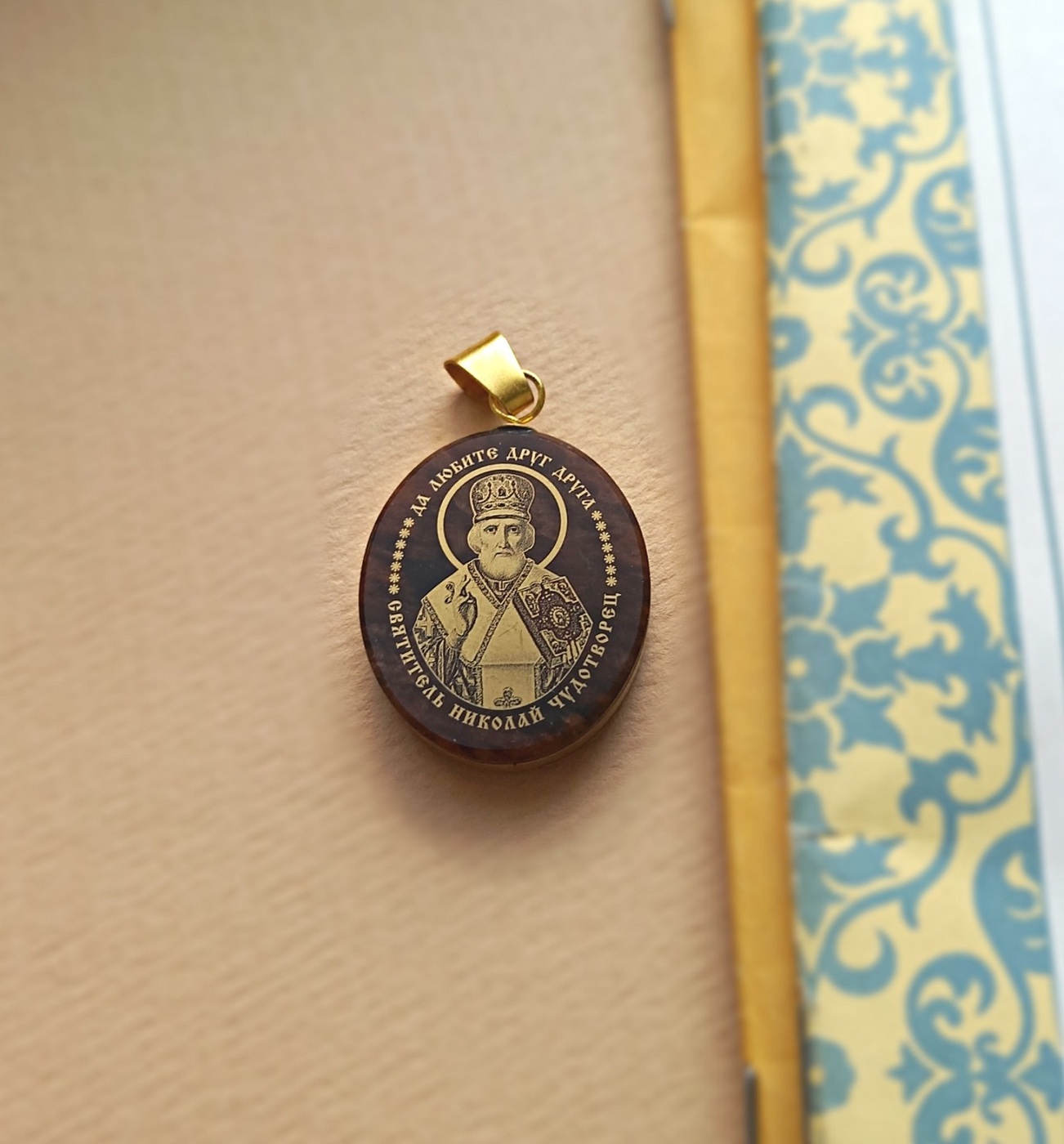 Комплектация:нательная иконка; упаковкаОписание:Небольшая нательная овальная иконка из обсидиана. Лик - Николай Чудотворец. Соответствует православным канонам. Средний вес 4.5 гр (Значение веса в характеристиках является примерным и может отличаться