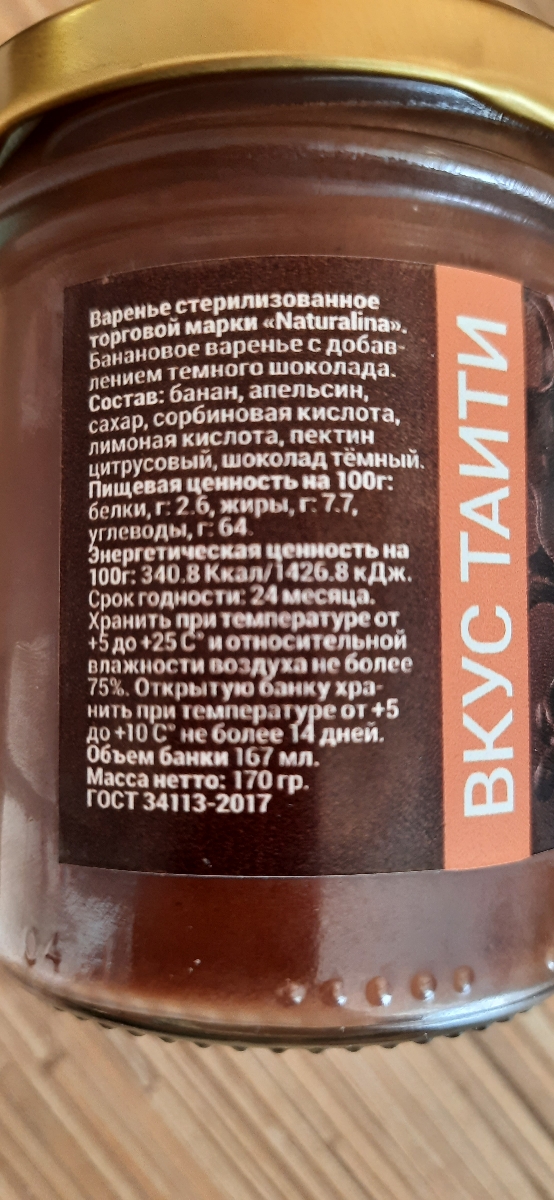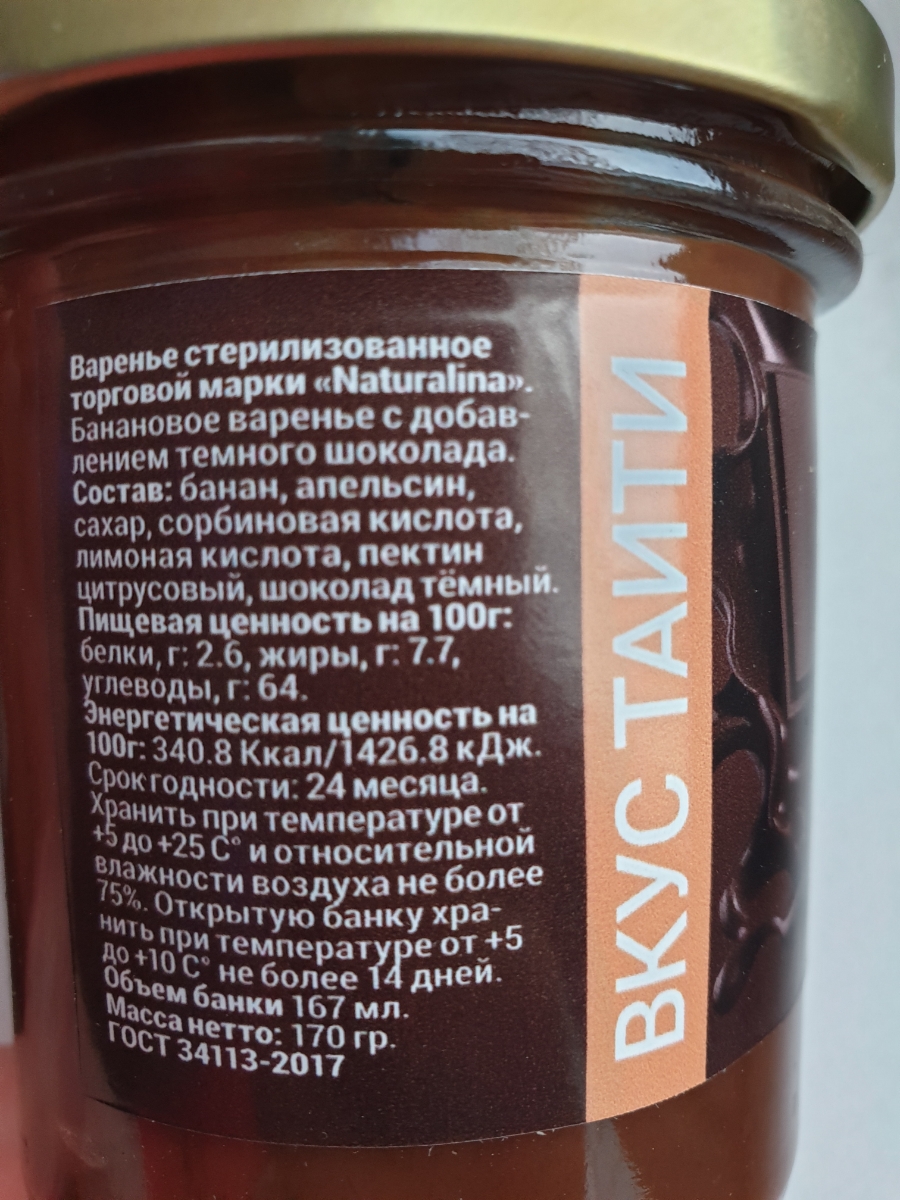 Условия хранения:Хранить при температуре от +0°C до +25°C. Беречь от попадания прямых солнечных лучей. После вскрытия хранить в холодильнике.Состав:Банан,апельсин,сахар,сорбиновая кислота,лимонная кислота,пектин цитрусовый,шоколад темныйОписание:10 рублей