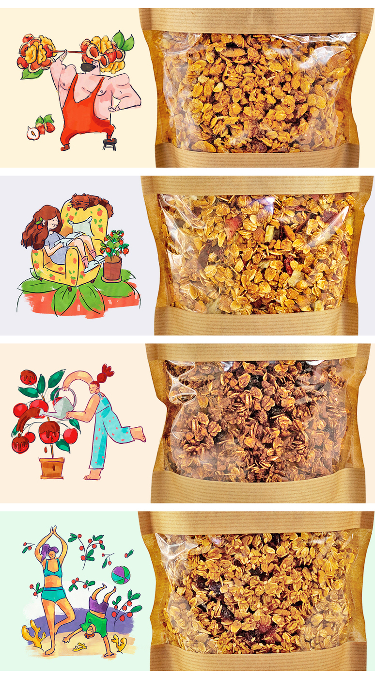 Granola is Pechi — натуральная гранола без сахара с простым и полезным составом.24 порции вкусной гранолы для любого настроения, попробуйте их все и выберите любимую!В наших гранолах много орехов и фруктов, мы не добавляем сахар и используем минимум мёда,