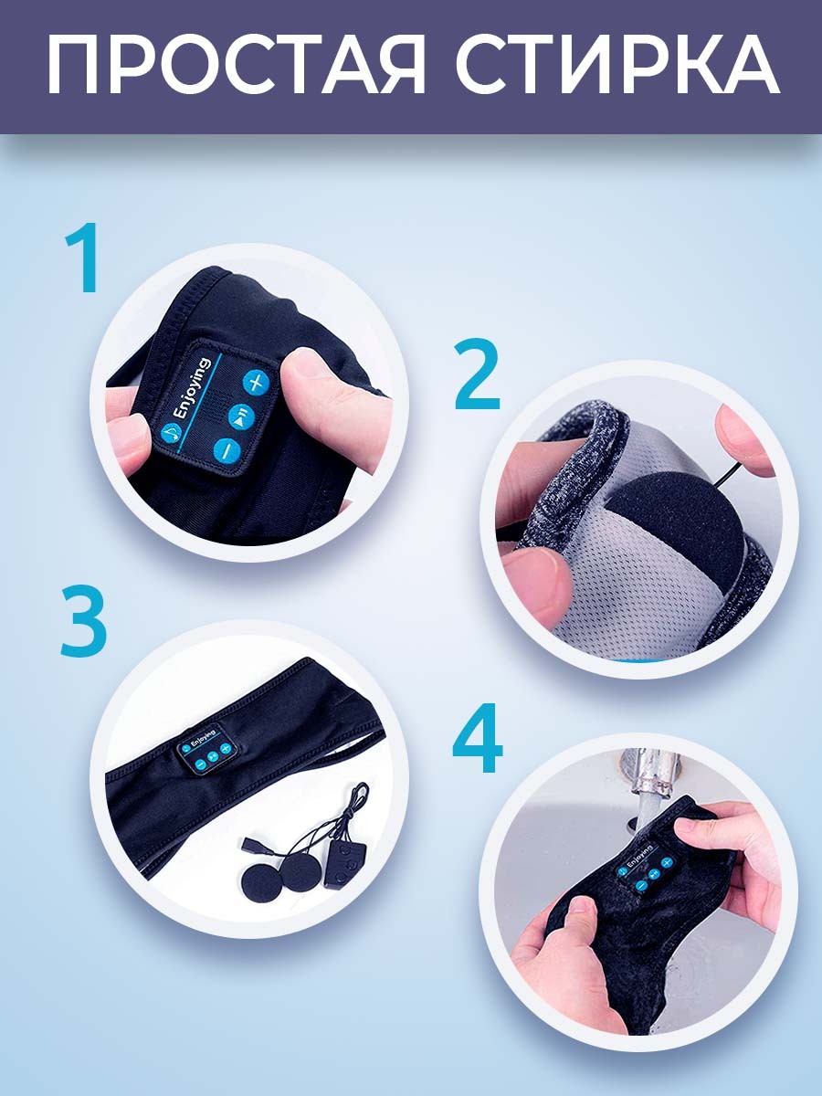 Комплектация:1. Повязка со встроенными наушниками и микрофоном и блоком управления 2. Инструкция по эксплуатации (англ) 3. Кабель micro USBОписание:Универсальная повязка на голову, которую легко можно использовать как маску для сна во время путешествий. О