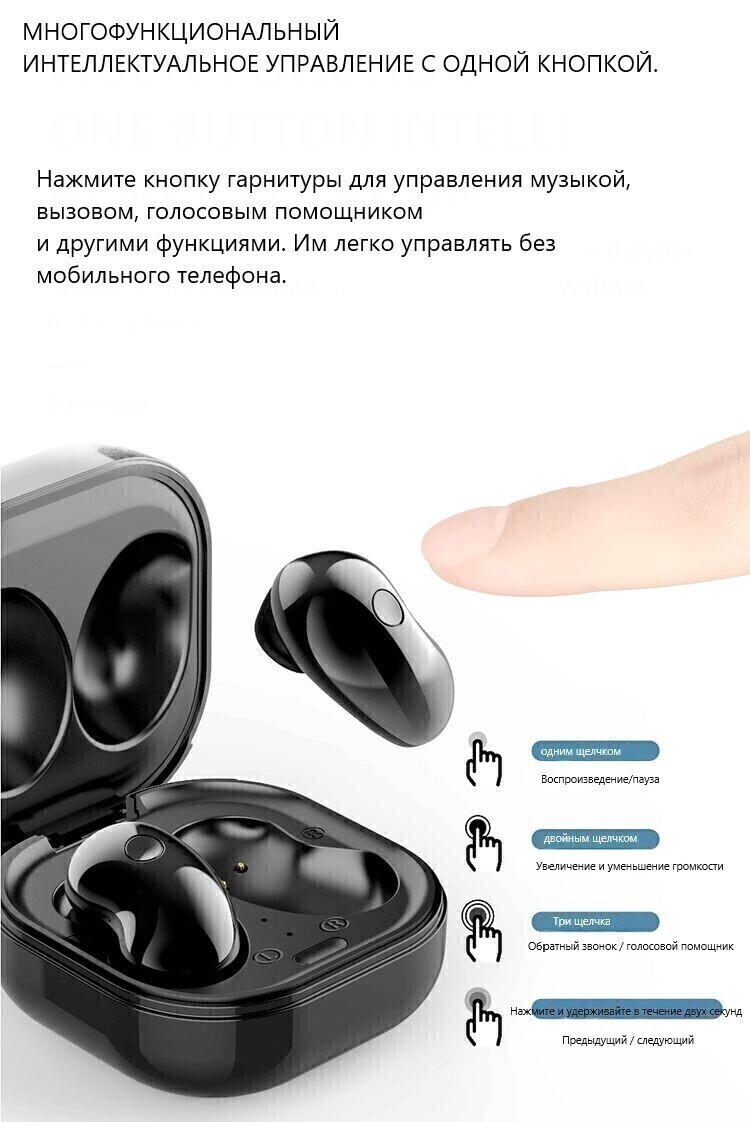 Комплектация:Зарядный кейс: 1 шт, Наушники: 2 шт (левый, правый), Инструкция, Провод для зарядки: 1 штОписание:Беспроводные наушники S6 plus , Bluetooth V5.1Новинка рынка – беспроводные игровые наушники S6 plus с зеркальной поверхностью имеют уникальный ц