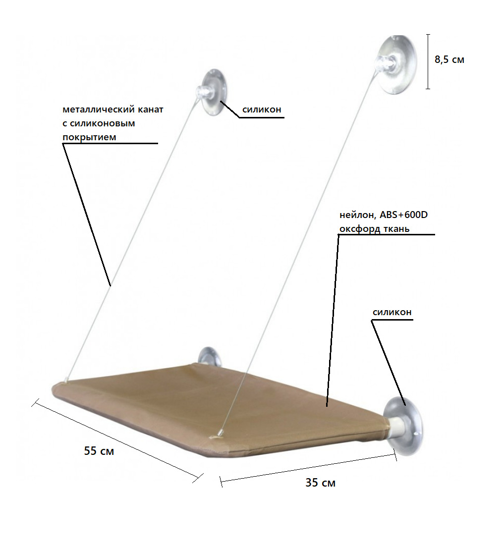 Особенности лежакаС нескользящим основанием, Съемная подстилка, Подвесной, На окно, На стену