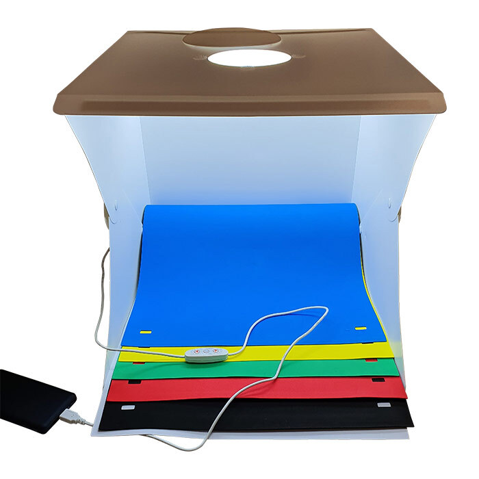 Фотобокс 40 см с окошком сверху и 2 светодиодными лентами из 70 светодиодов smd. Фотобокс 40 см — это удобная световая конструкция для фотосъемки маникюра, рук, бижутерии. Он станет незаменим помощником как начинающим фотографам, так и профессиональным в