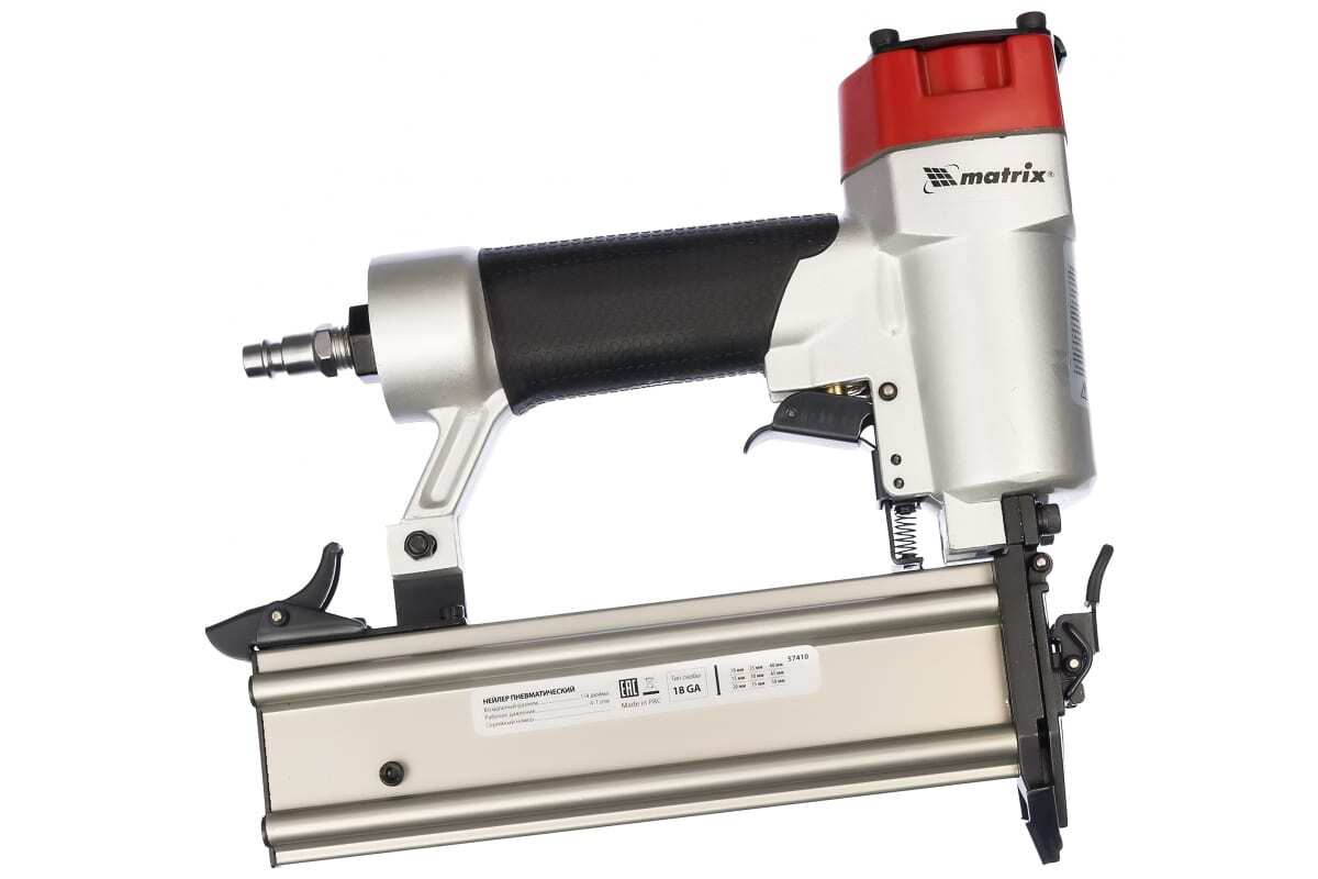 Пневматический нейлер для гвоздей MATRIX 57410 помогает быстро и надежно крепить паркетные доски, фанеру, гипсокартон, кожу и т.д. Рукоять удобной формы снабжена нескользящим покрытием для надежного удержания инструмента без проскальзывания руки. Модель р