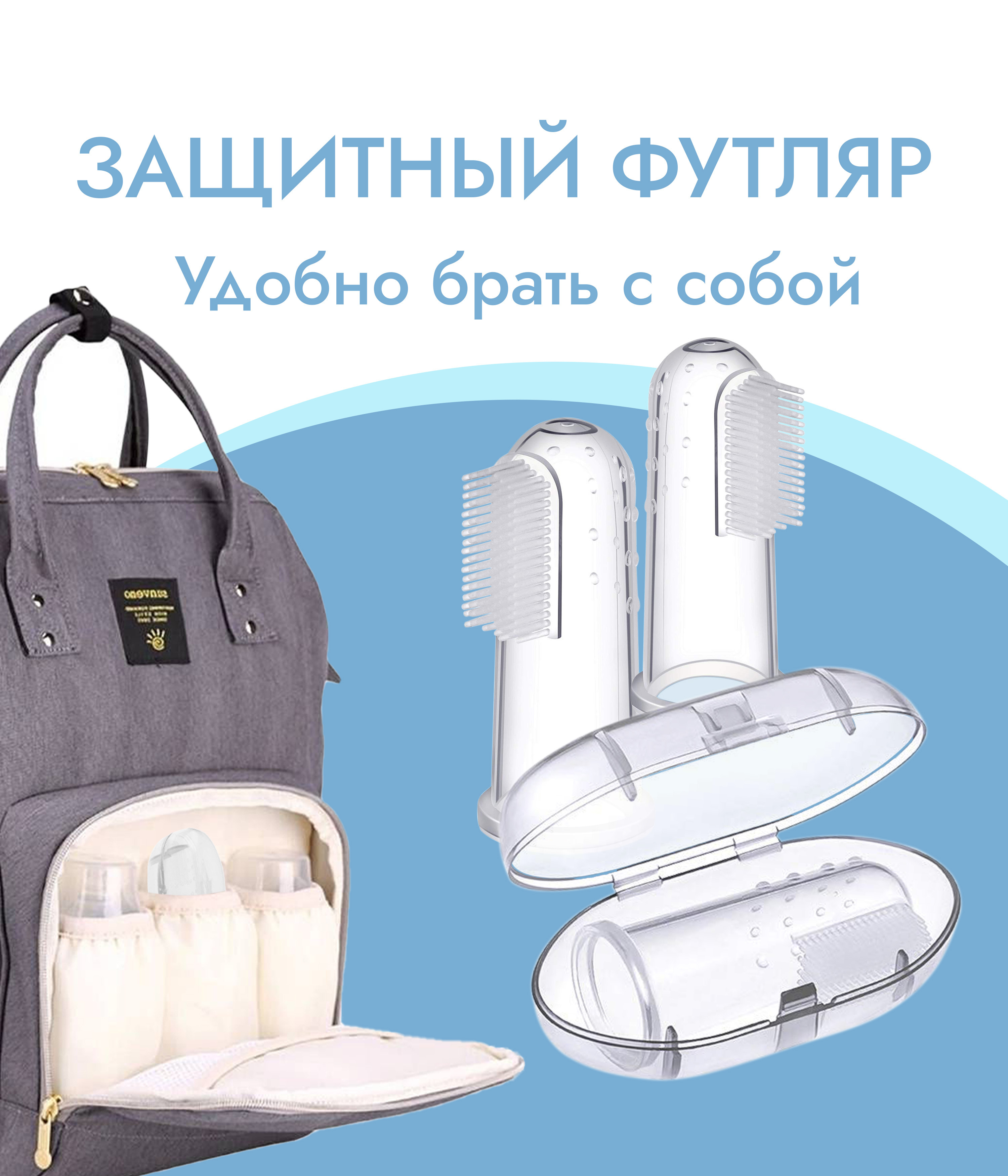 Состав:силиконКомплектация:Набор состоит из 2 силиконовых щеток, которые надеваются на палец и двух контейнеров белого цвета.Описание:Набор зубных щеток-напальчников для детей. Зубные щетки имеют мягкую силиконовую щетину, которая бережно очищает поверхно