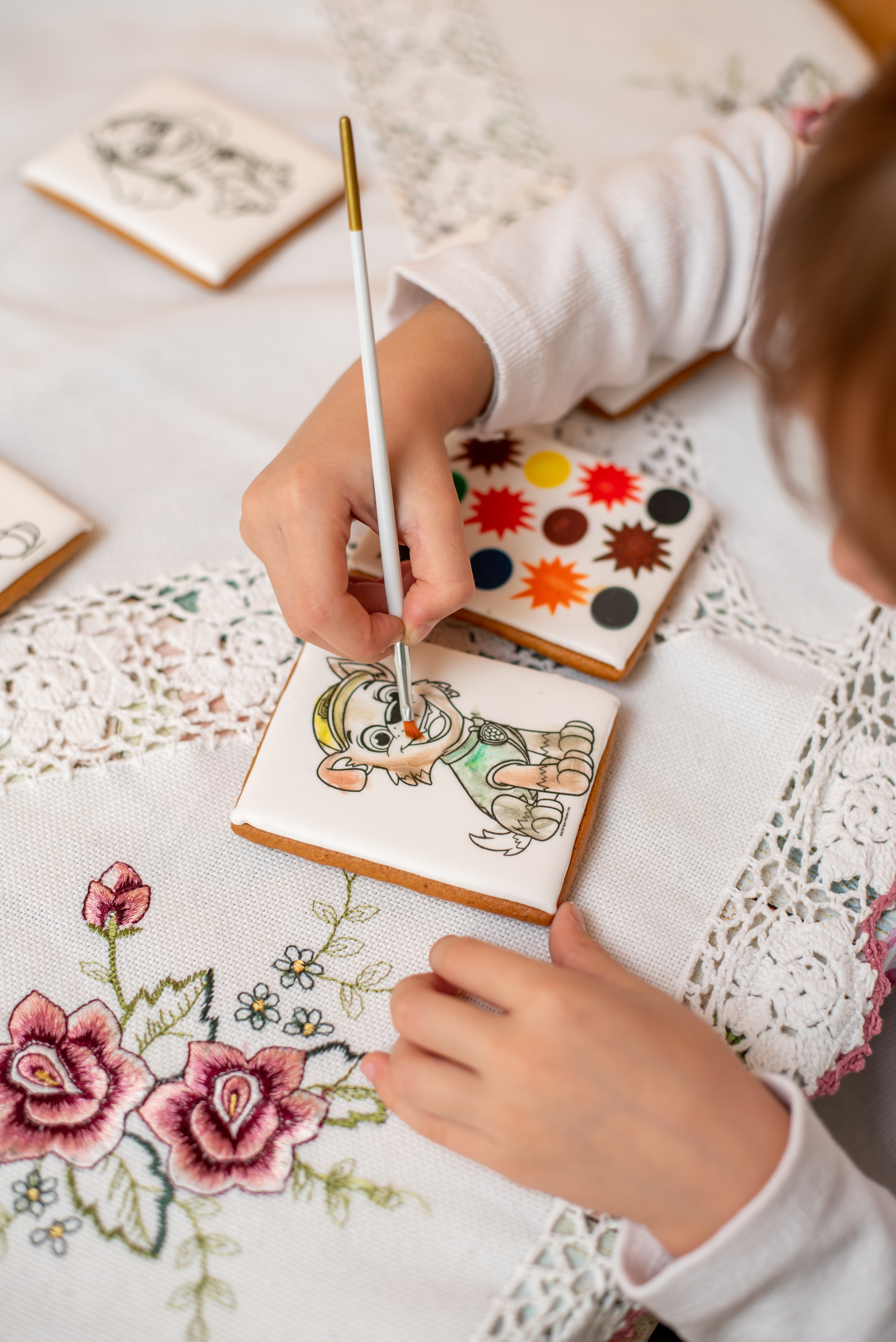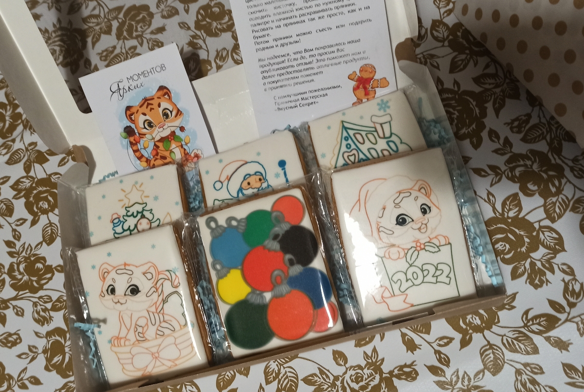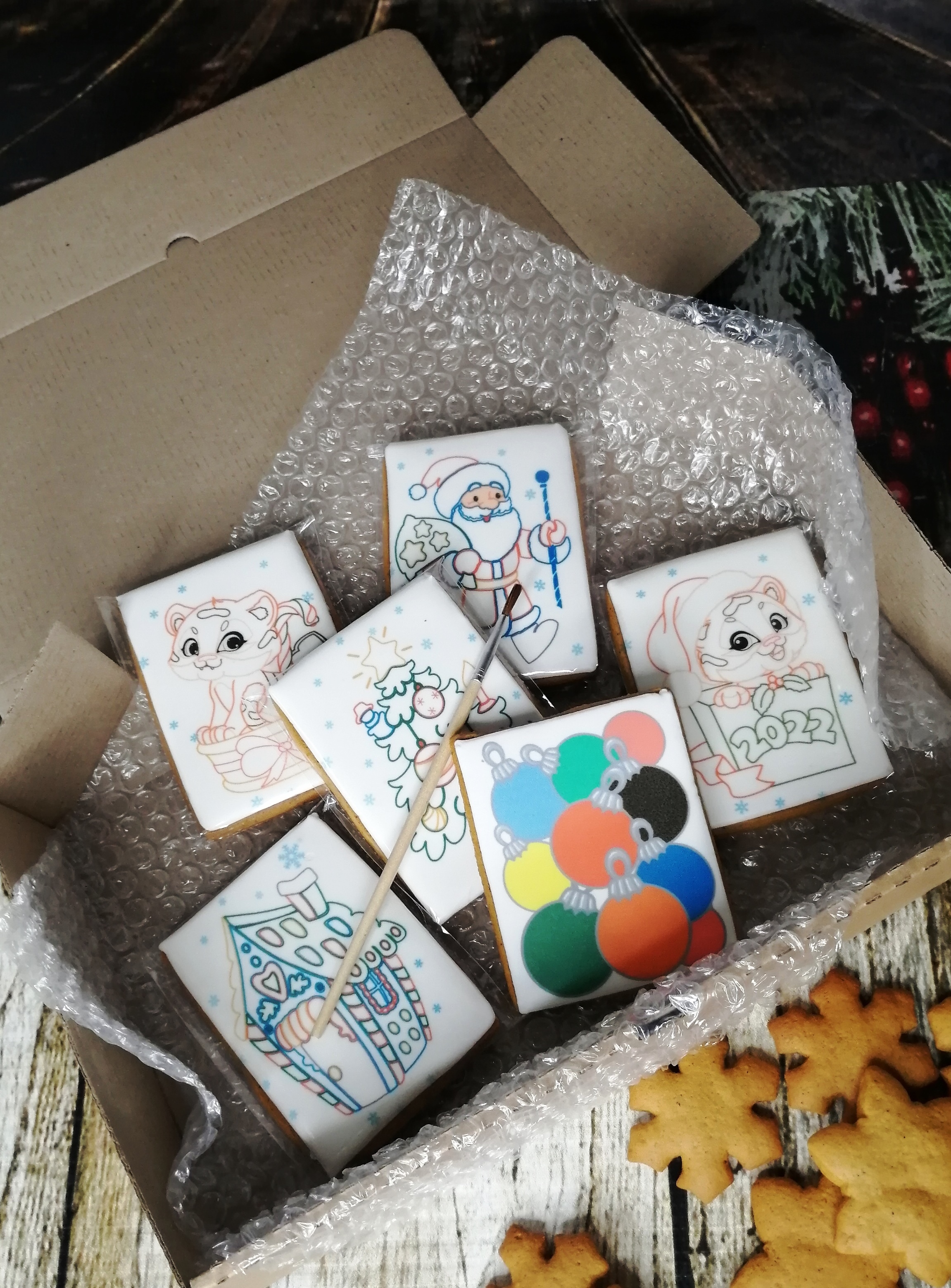 Состав:мука пшеничная, сахар, мед, масло сливочное, яйцо куриное, пряности (имбирь, корица), сода, сухой яичный белок, вода, пищевые красители.Комплектация:6 пряников в пакетиках, кисточка, коробкаУсловия хранения:Хранить в упакованном виде при температур