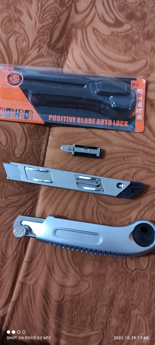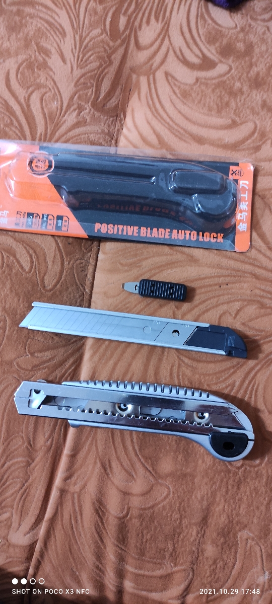 Комплектация:Канцелярский нож - 1 шт.Описание:Канцелярский нож ( строительный, ремонтный, технический, монтажный, малярный ) подойдет для разрезания :фанеры 3 мм,пластика, картона, веревки, бумаги, ткани, резины, пленки, подготовки отверстий в фанере 6 мм