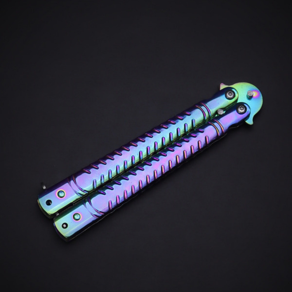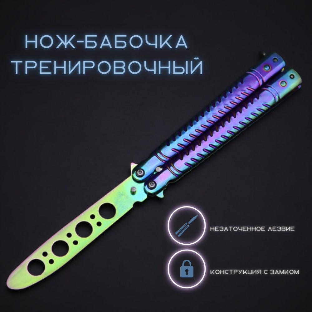 Тренировочный нож-бабочка - это специальное безопасное орудие для новичков во флиппинге. Механизм складывания балисонга для тренировок полностью идентичен стандартному острому изделию, отличает конструкцию лишь закругленное тупое лезвие. Безопасный тренир