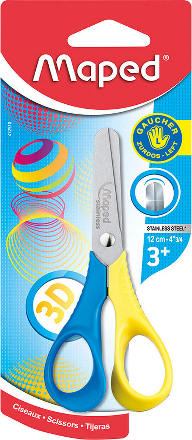 Ножницы для левшей MAPED VIVO Reflex3D 12см, детские, эргономичные симметричные кольца, желтый. Всемирно известный французский производитель канцелярских принадлежностей для офиса, школы и дома тм MAPED представляет ножницы для левшей серии VIVO. Ножницы