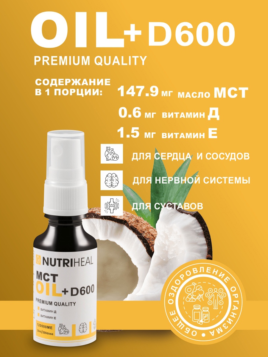 Состав:Масло МСТ, витамин Д, витамин Е.Способ применения:Одна порция – это одно нажатие на дозатор, 1 раз в день (600МЕ).Противопоказания:Индивидуальная непереносимостьОписание:Витамины D и Е премиум-качества в масле МСТ (mct oil). Комплекс разработан шв
