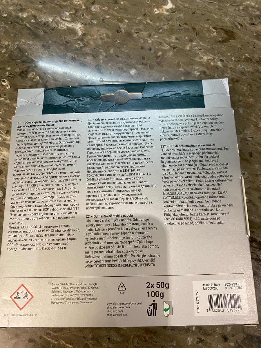 Средство глубокой очистки для посудомоечных машин. Удаляет из моечной камеры, труб и шлангов остатки жира, скапливающиеся в них со временем и вызывающие неприятные запахи и неудовлетворительные результаты мойки. Не содержит фосфора. Использовать каждые 6