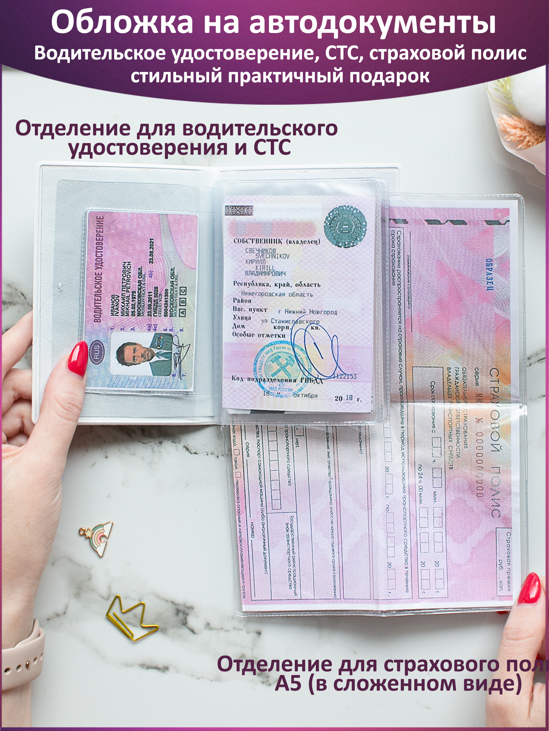 Комплектация:Обложка на автодокументы женская - 1 шт