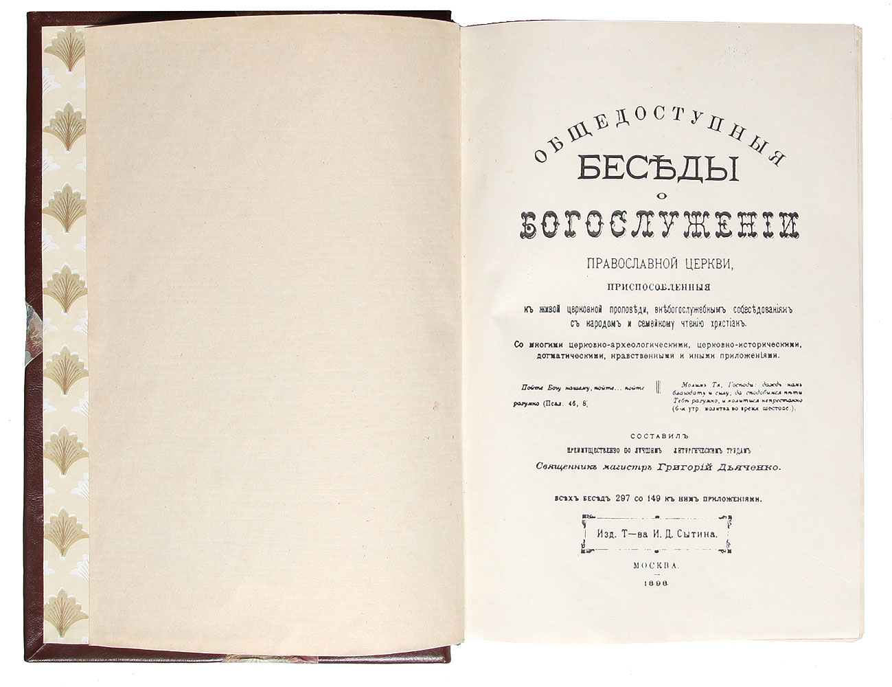 Москва, 1898 год. Издание Товарищества И. Д. Сытина. Профессиональный новодельный переплет с золотым тиснением на корешке. Сохранность хорошая. Восстановлен титульный лист. Григорий Михайлович Дьяченко (1850 - 1903) - священнослужитель Русской правосла
