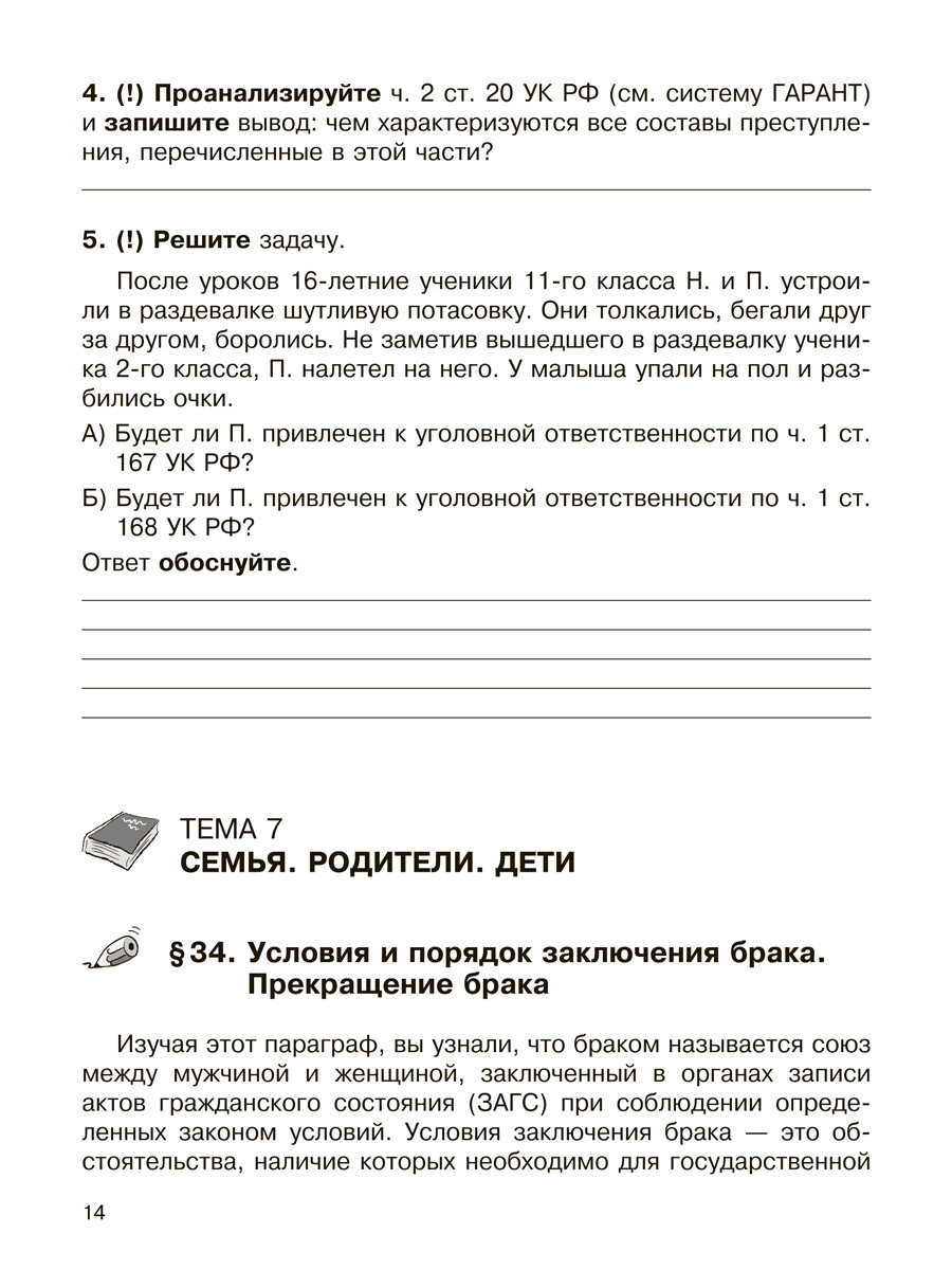 Рабочая тетрадь предназначена для проверки знаний учащихся по курсу права, а так же для формирования навыков самостоятельной работы с различными видами документов и выполнения практических заданий, в том числе при работе с электронным приложением к учебни