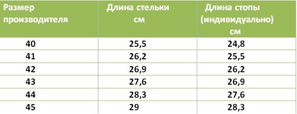 Длина стопы, см24, 8 см Индивидуально