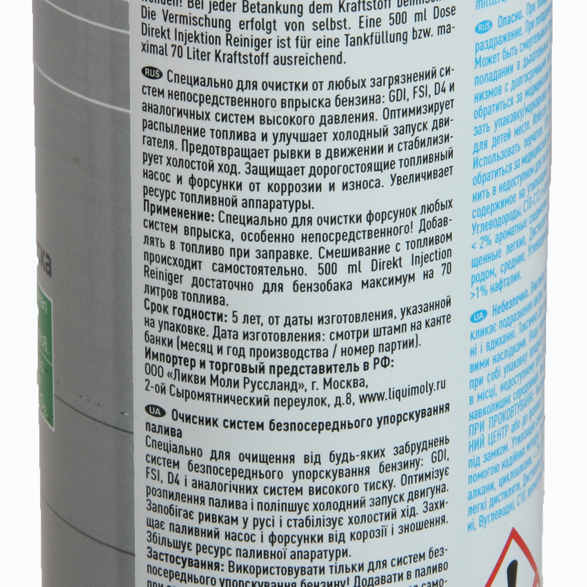 Direkt Injection Reiniger - специальное средство для очистки форсунок непосредственного впрыска систем GDI, FSI, D4 и подобных. Заменяет очистку на специальном стенде. Позволяет быстро и эффективно удалять нагар, смолы и отложения. Снижает расход топлива