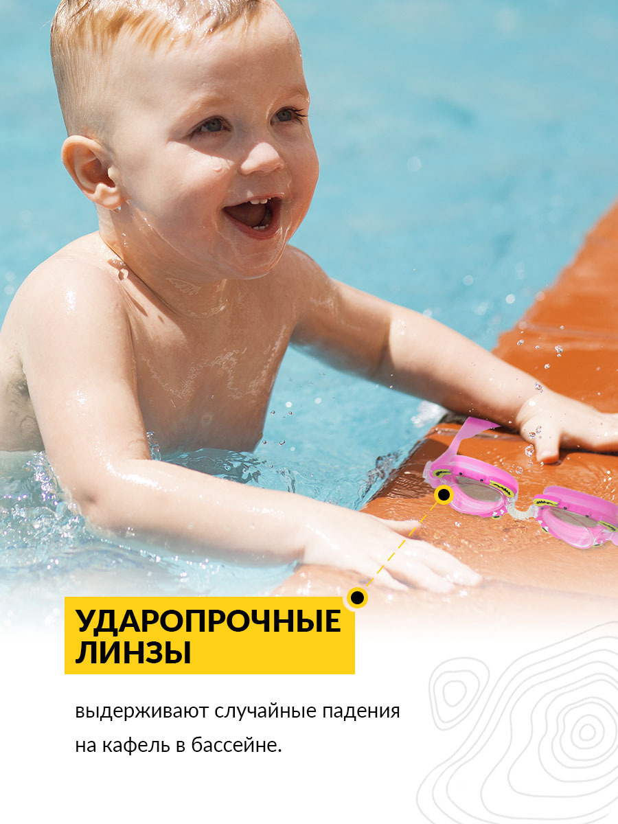 Детские очки для плавания полностью защитят глаза ребенка от попадания воды и хлорки. Очки для плавания в бассейне изготовлены из ударопрочных линз, поэтому им не страшны удары при случайном падении на кафель. Внутренний слой линз детских плавательных очк