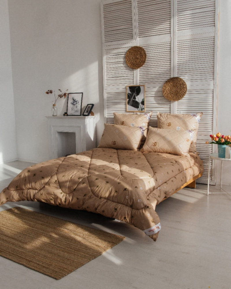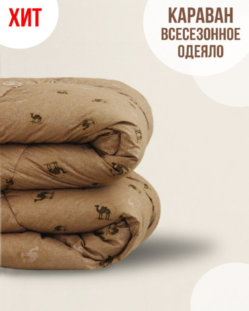 Оригинальная коллекция "Караван" выполнена с использованием натуральных волокон шерсти верблюда. Одеяло простегано многоигольной машиной, что в совокупности с технологией термоскрепления полиэфирного волокна и натуральных волокон шерсти верблюда позволяет