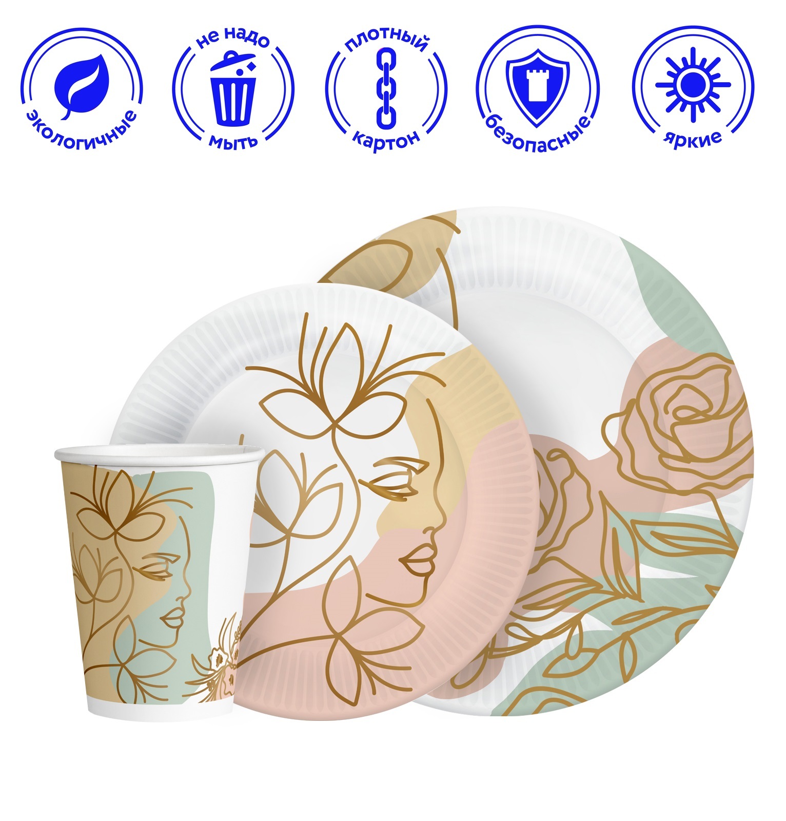 Комплектация:тарелки диаметром 18 см - 6 шт, тарелки диаметром 23 см - 6 шт,стаканы объемом 250 мл - 6 штОписание:Набор одноразовой посуды торговой марки ND Play для организации праздника, торжества или пикника – прекрасный выбор. В составе комплекта: 6 т