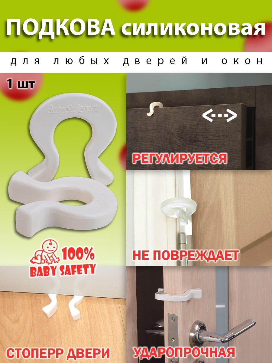 Стоппер для двери, Подкова Baby Safety на межкомнатную дверь 3 в 1 - 1шт. изготовлена из силикона не повреждает двери и не развалится как вспененные после трех хлопков дверью, предназначена от детей на двери, для снижения травматизма ребенка межкомнатными