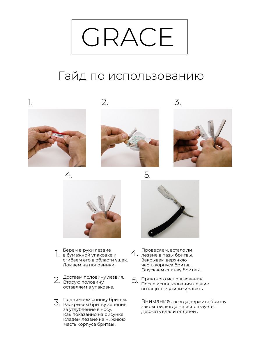 Комплектация:Опасная бритва / Шаветт. Кожаный чехолОписание:Бренд "Grace by DK" был создан двумя Барберами с многолетним опытом, который мы учли при производстве наших инструментов.Держатель нашей "Опасной бритвы" - "Шаветтки" изготовлен из японской нержа