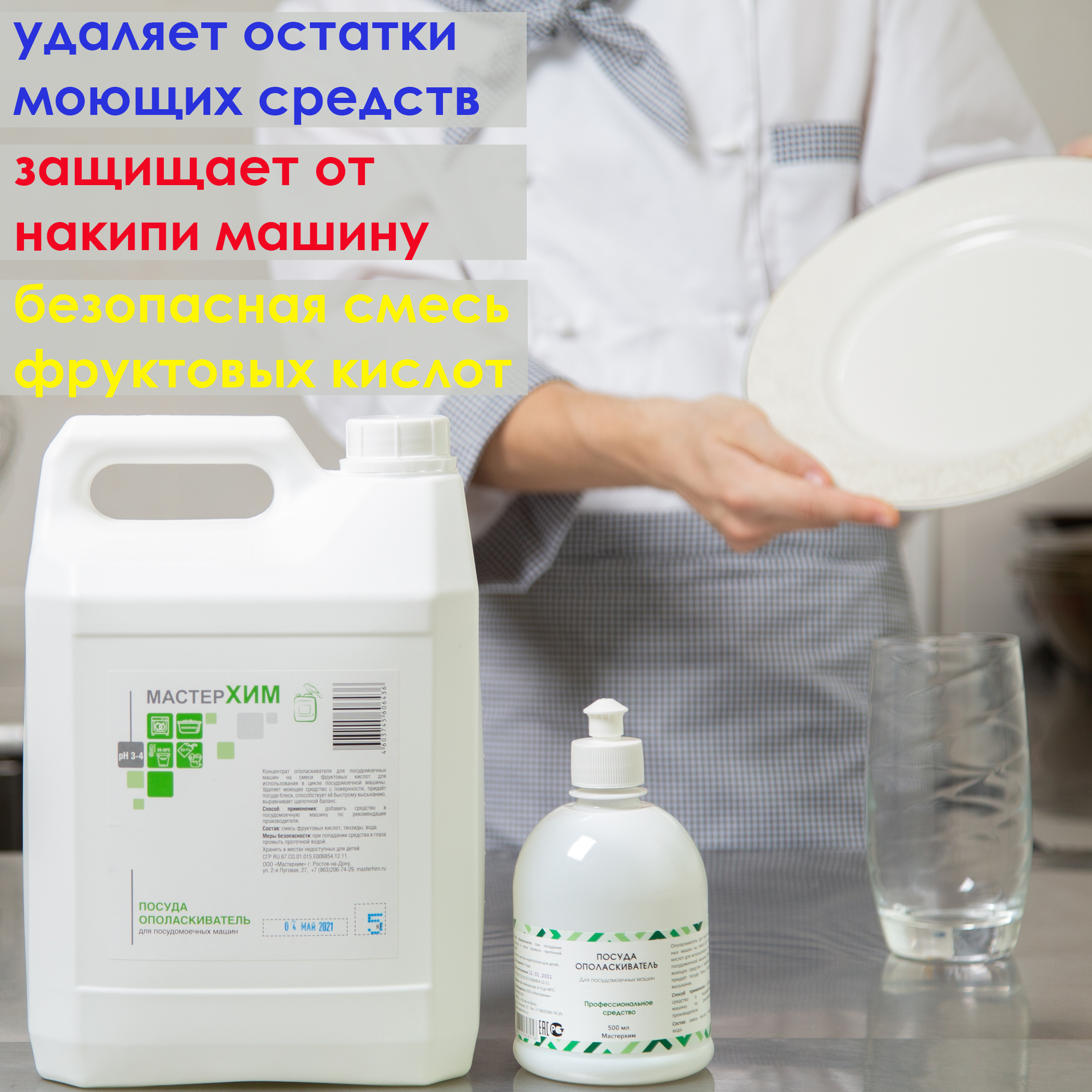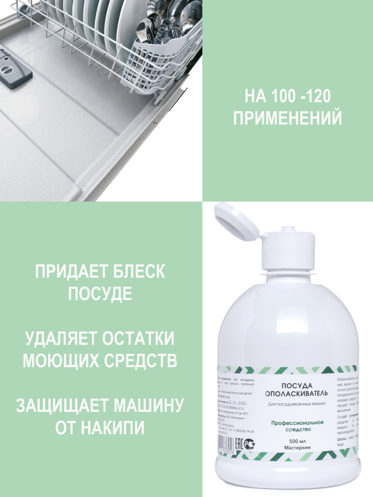 Ополаскиватель для посудомоечных машин на смеси фруктовых кислот для использования в цикле посудомоечной машины. Удаляет моющее средство с поверхности, придает посуде блеск, ускоряет высыхание.Способ применения: добавить средство в посудомоечную машину по
