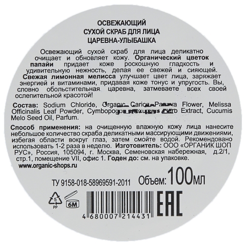 Составsodium chloride, organic carica papaya flower, melissa officinalis leaf powder, cymbopogon flexuosus herb extract, cucumis melo seed oil, parfum