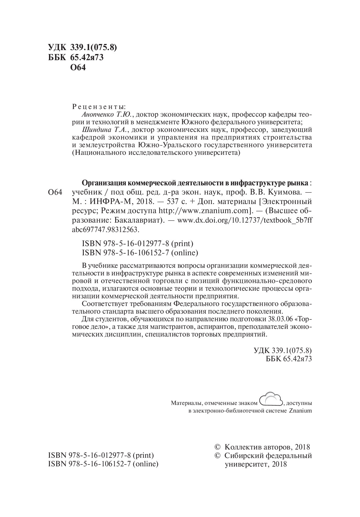 В учебнике рассматриваются вопросы организации коммерческой дея-тельности в инфраструктуре рынка в аспекте современных изменений мировой и отечественной торговли с позиций функционально-средового подхода, излагаются основные теории и технологические проце