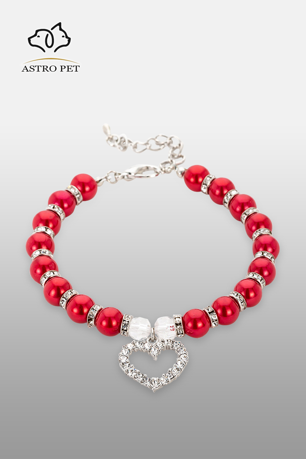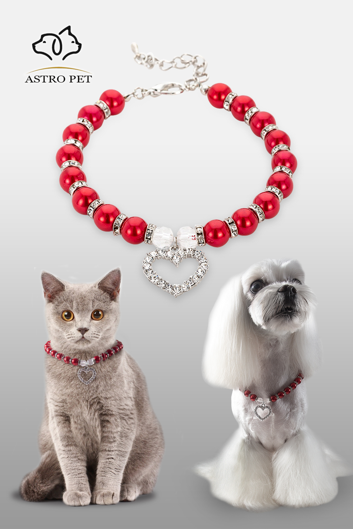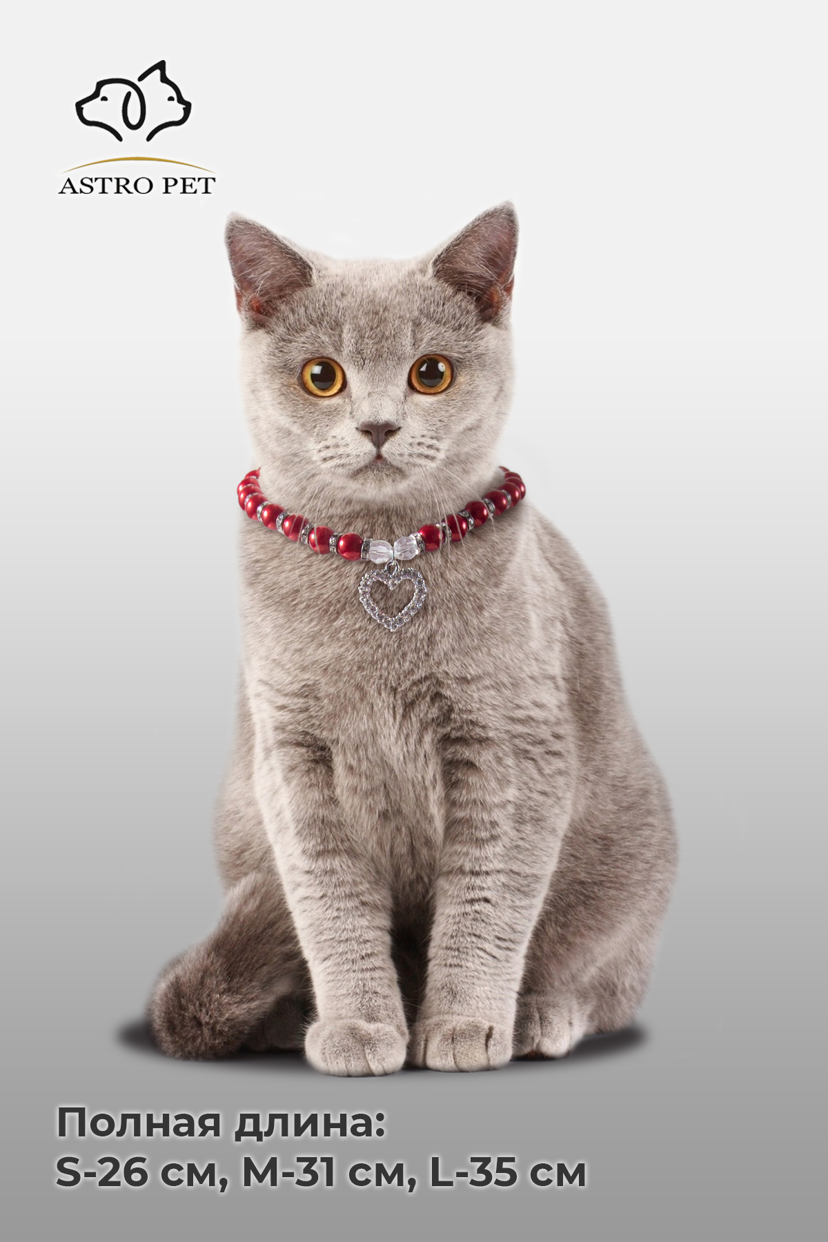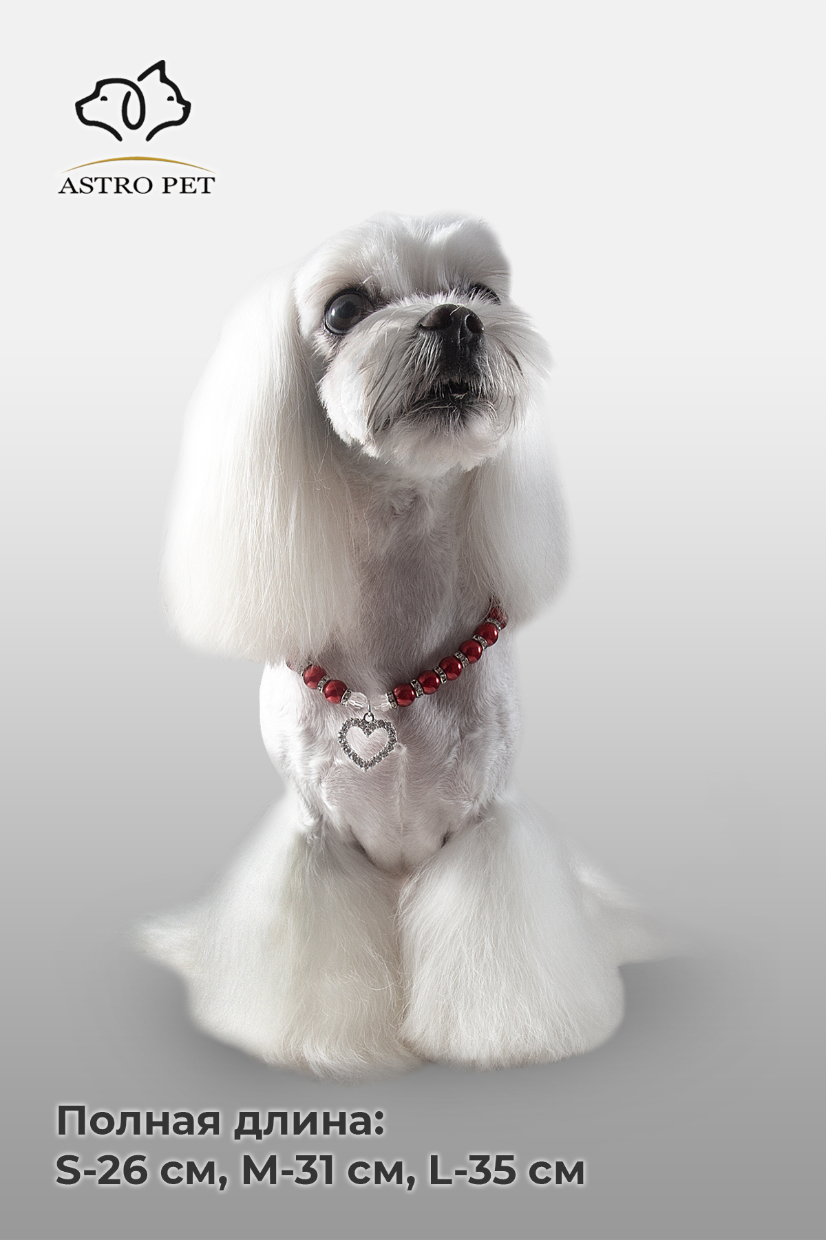 Украшение для собак и кошек в виде бус со стразами и сердечком. Длина регулируется цепочкой. Размер S длина 26 см, M-31 см,L-35 см