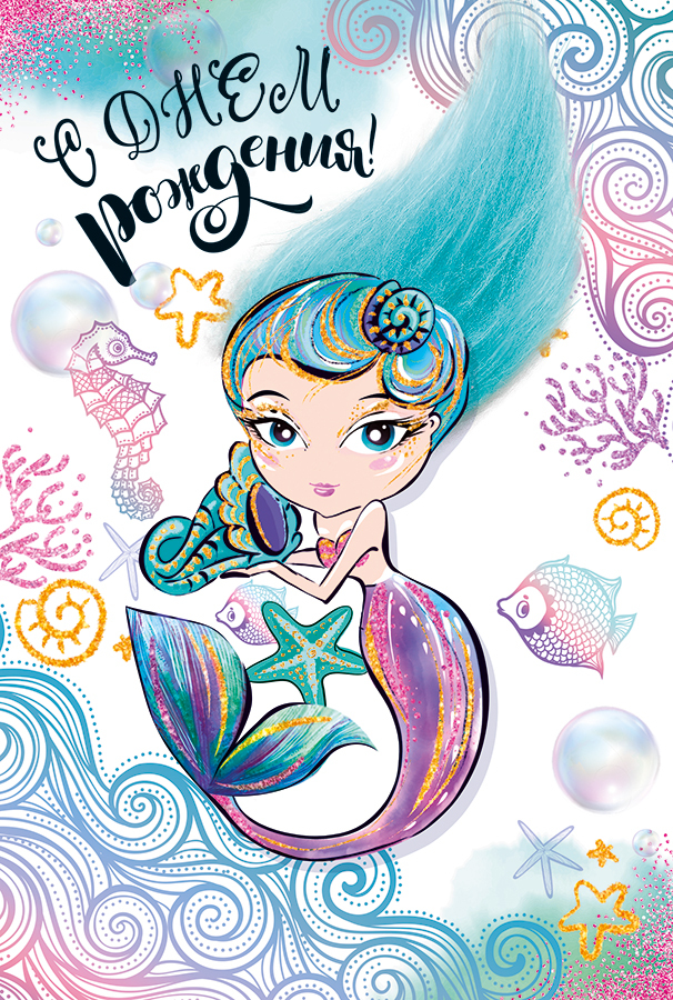 Комплектация:Открытка+конвертОписание:Открытка в индивидуальной упаковке с очаровательной русалочкой! Открытка декорирована элементом на скотче и натуральной пряжей в виде копны волос!