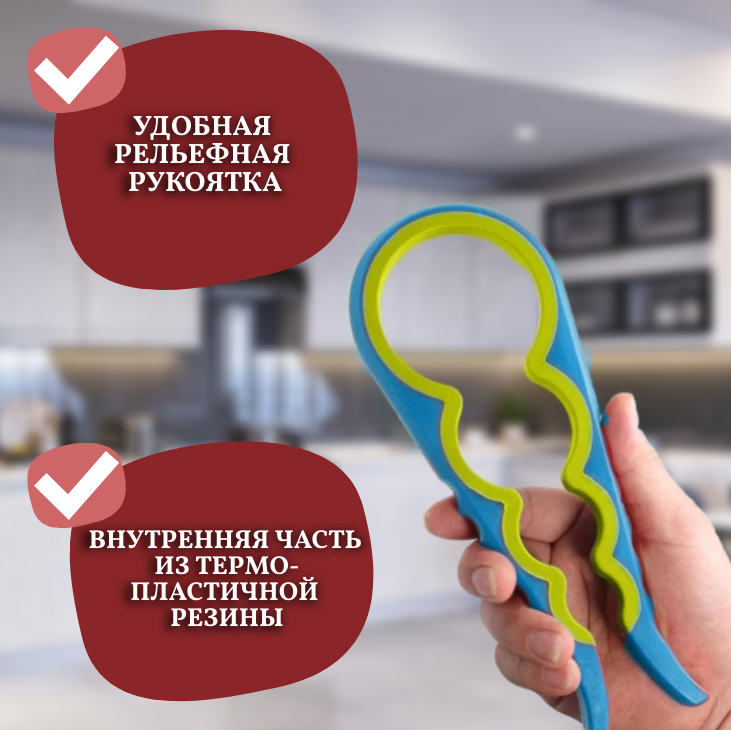 Комплектация:Открывалка 1 шт, упаковкаОписание:Универсальная симпатичная и яркая открывашка позволит вам с легкостью открыть бутылки и банки с винтовыми крышками различных размеров. С таким ключом открывать и закрывать банки не составит труда, а крышки бу