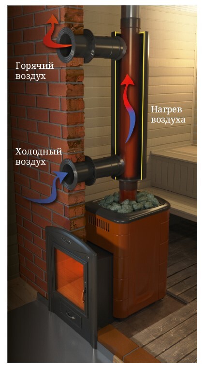 Натрубные отопители предназначены для ускоренного нагрева соседних с отапливаемым помещений за счет отбора тепла от уходящих дымовых газов, а также для защиты от жесткого инфракрасного излучения, исходящего от дымовой трубы. Применяется с банными печами.