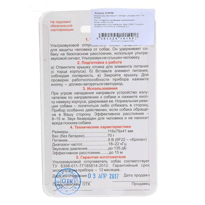 С прибором нестрашна ни одна собака на расстоянии до 15 метров. Животное побоится приблизиться к устройству из-за мощного ультразвука мощностью 135 децибел. Однако это не значит, что прибор шумит во время работы, ведь люди не воспринимают высокочастотные