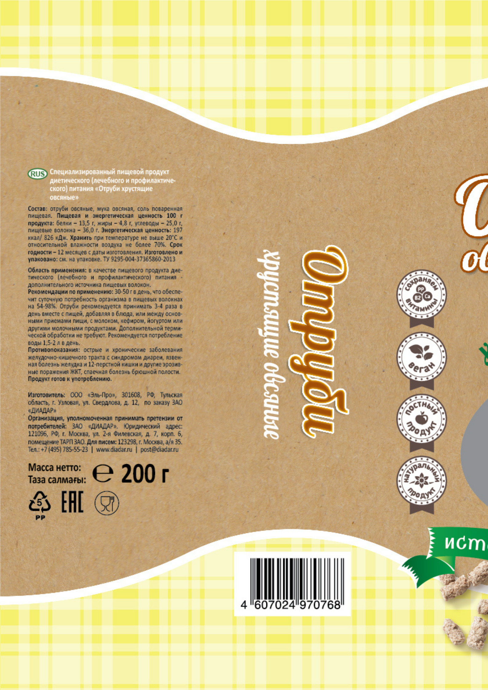 Условия хранения:в сухом месте, избегая попадания прямых солнечных лучей, при температуре до 20°C и относительной влажности не более 70%Состав:отруби овсяные, мука овсяная, соль поваренная пищевая.Комплектация:20 шт.Описание:ПОСТВЕГАНБЕЗ САХАРАБЕЗ ФРУКТОЗ