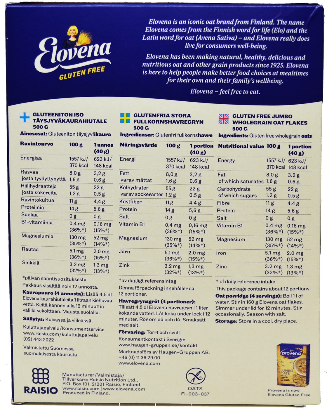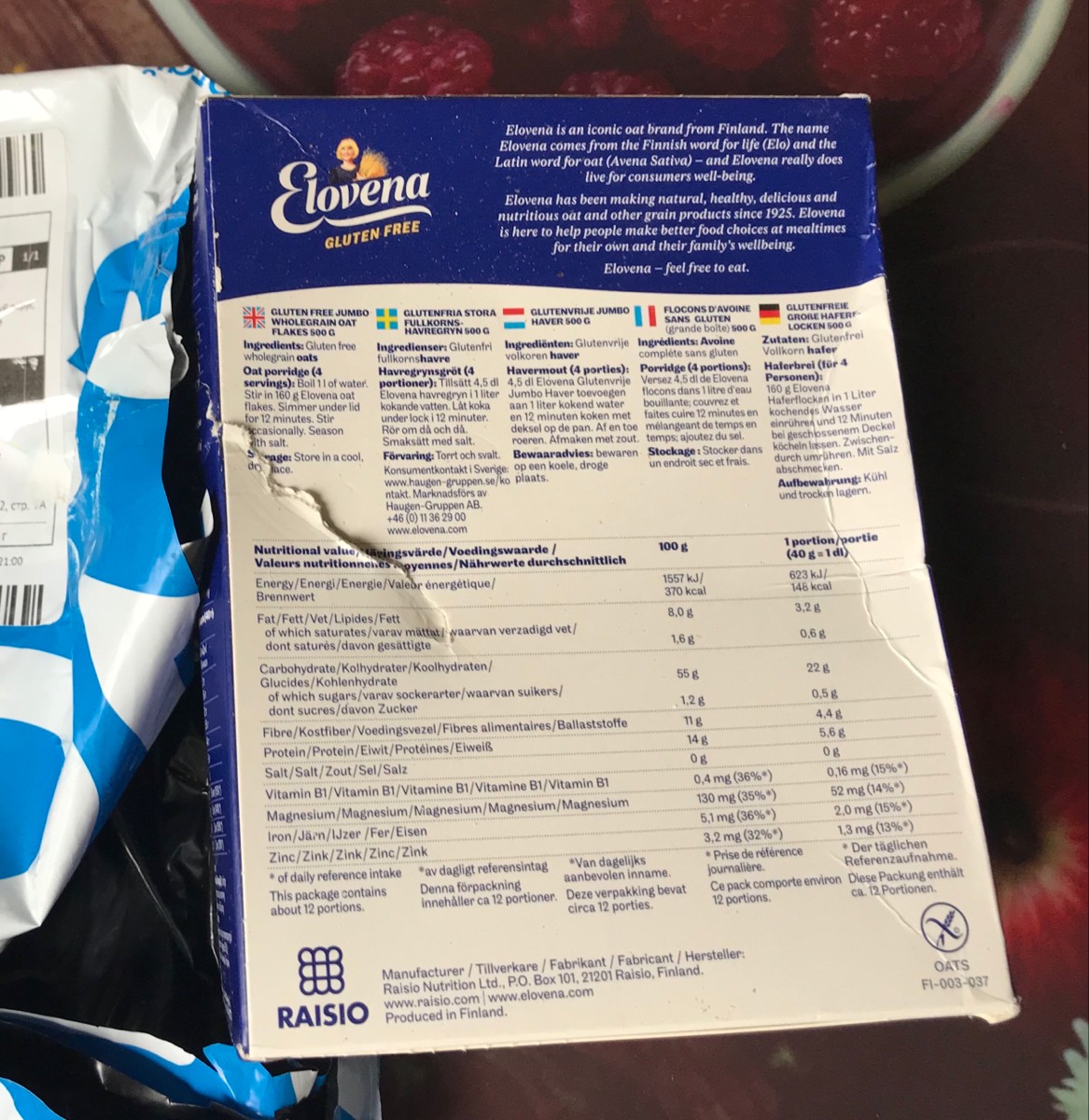 Условия хранения:Хранить в прохладном, сухом месте вдали от сильных запахов и солнечных лучей при температуре не выше 25 градусов и относительной влажности воздуха не более 75%. Состав:Овсяные хлопья из цельного зерна