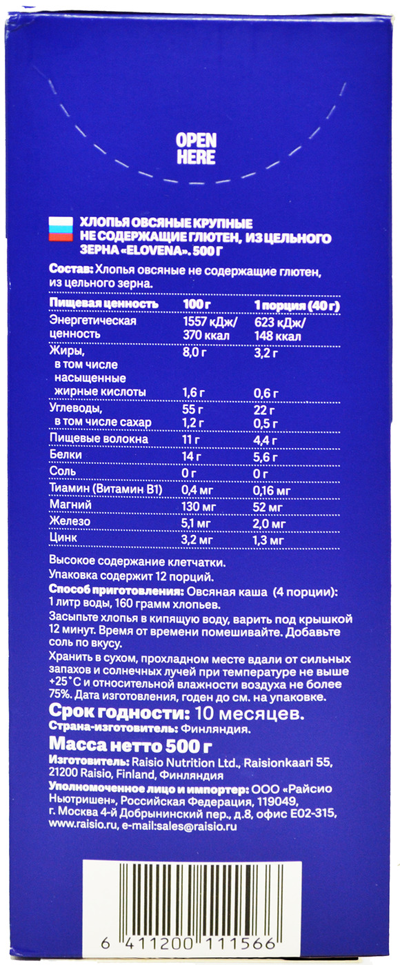 СоставОвсяные хлопья из цельного зерна