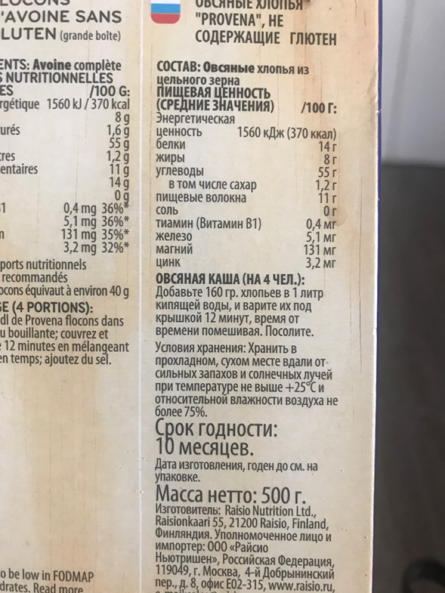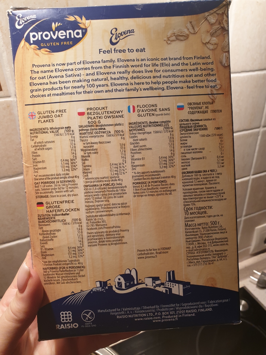 Условия хранения:Хранить в прохладном, сухом месте вдали от сильных запахов и солнечных лучей при температуре не выше 25 градусов и относительной влажности воздуха не более 75%. Описание:Произведен ребрендинг марки Provena в Elovena. Качество товара остал