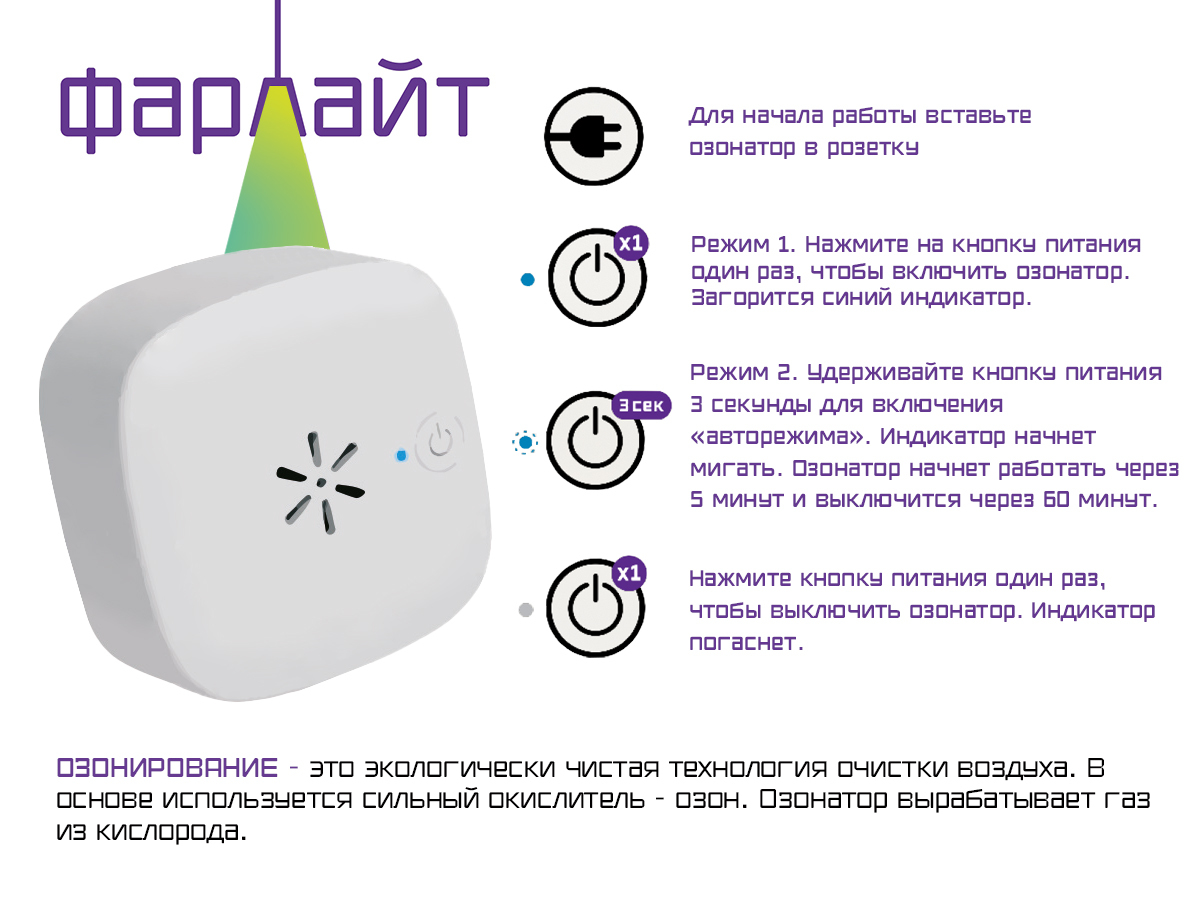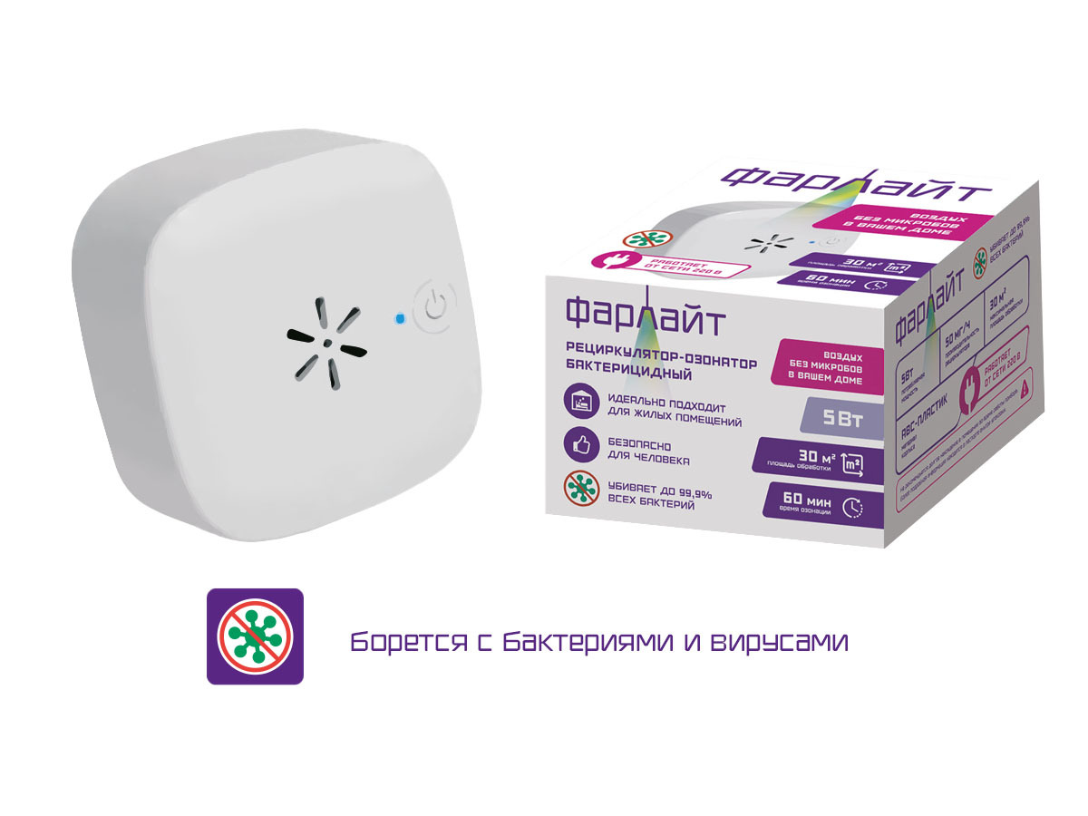 Комплектация:Озонатор, паспорт, упаковкаОписание:Идеально подходит для жилых помещений. Безопасно для человека. Убивает до 99,9% всех бактерий. Потребляемая мощность 5 Вт; Производительность рециркулятора 50 мг/ч; Максимальная площадь обработки 30 м2; Вре