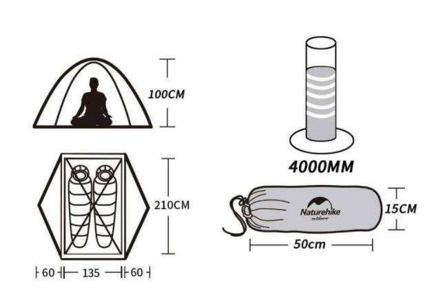 2-х местная, материал - НЕЙЛОНСерия палаток Mongar 2 - профессиональные всепогодные двухслойные ультралегкие треккинговые палатки именитого бренда Naturehike, специализирующегося на производстве экипировки, снаряжении и аксессуаров для путешествий, кемпин